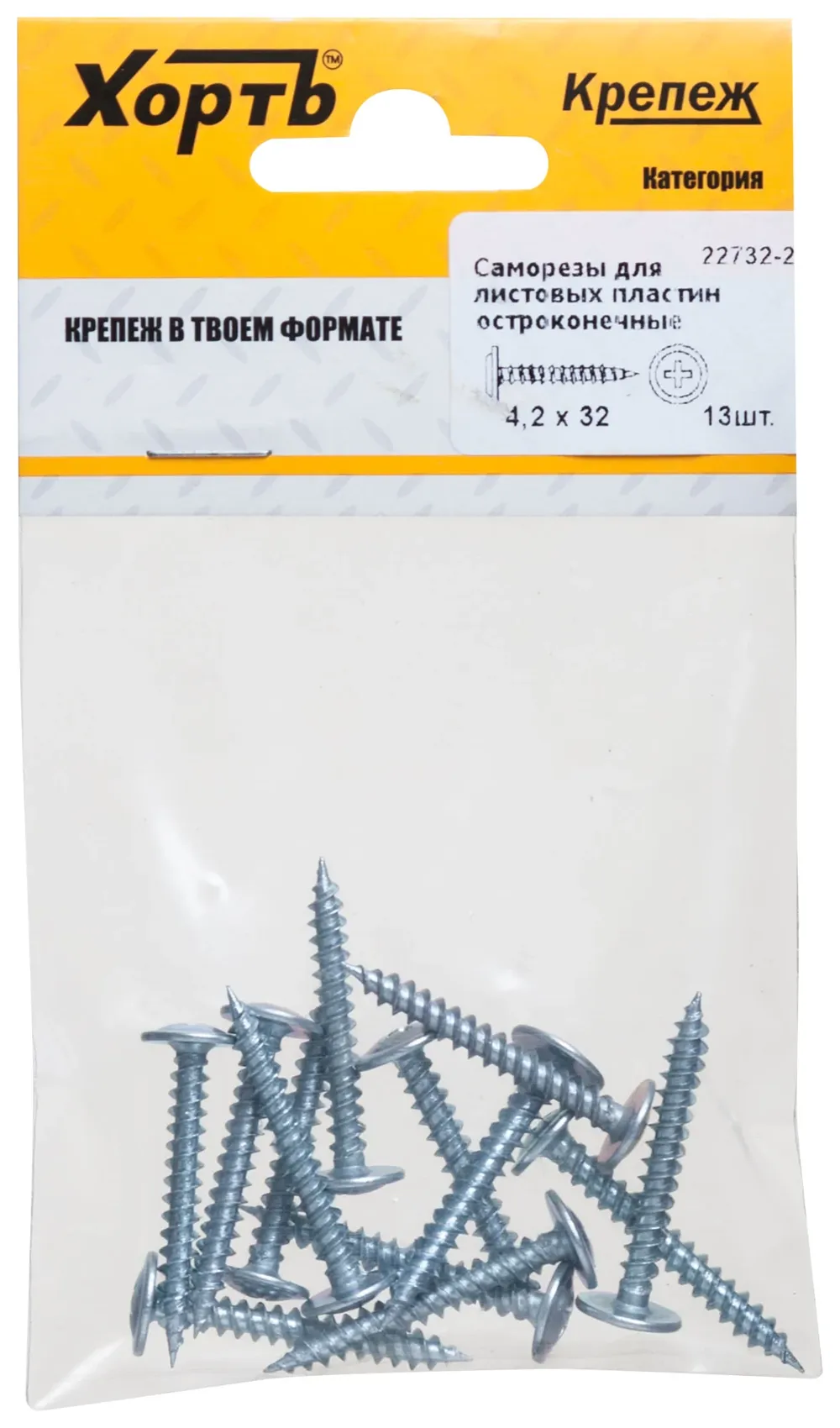 Саморезы для листовых пластин, остроконечные 4,2 х 32 (фасовка 13 шт) — крепёжный элемент для монтажа, фиксации и сборки конструкций.