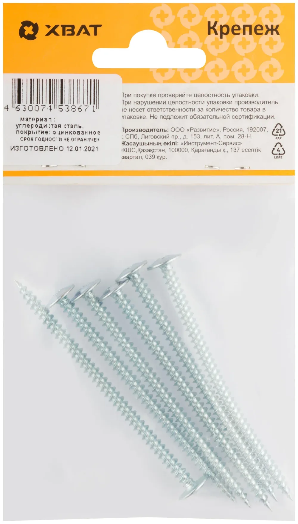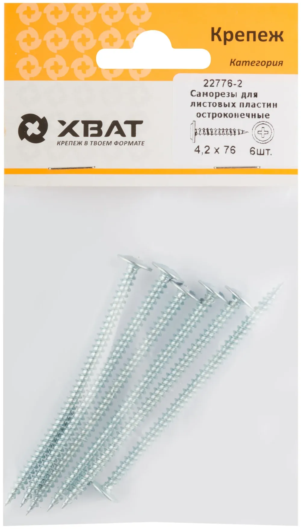 Саморезы для листовых пластин, остроконечные 4,2 х 76 (фасовка 6 шт) — крепёжный элемент для монтажа, фиксации и сборки конструкций.