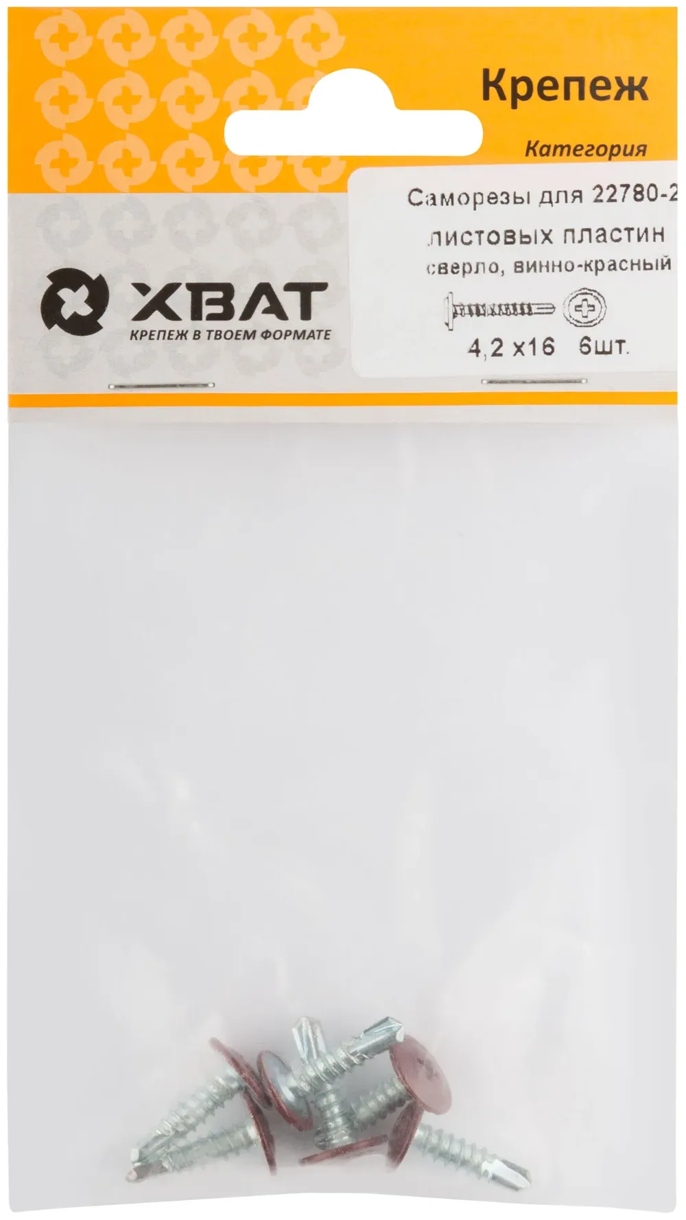 Саморезы для листовых пластин, сверло 4,2 х 16 винно-красный, RAL 3005 (фасовка 6 шт) — крепёжный элемент для монтажа, фиксации и сборки конструкций.