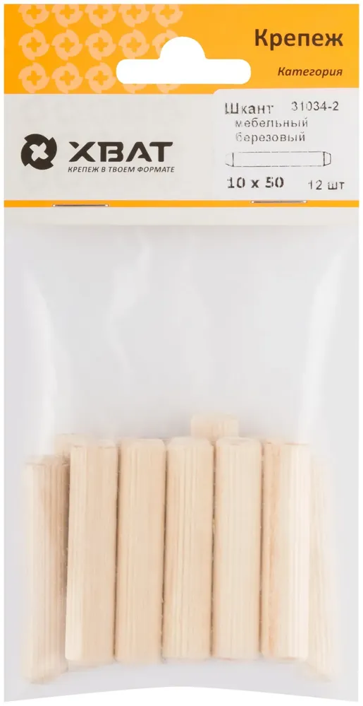 Шкант мебельный 10 х 50 березовый (фасовка 12 10.) — товар для строительных и ремонтных работ для строительных, монтажных и хозяйственных задач.