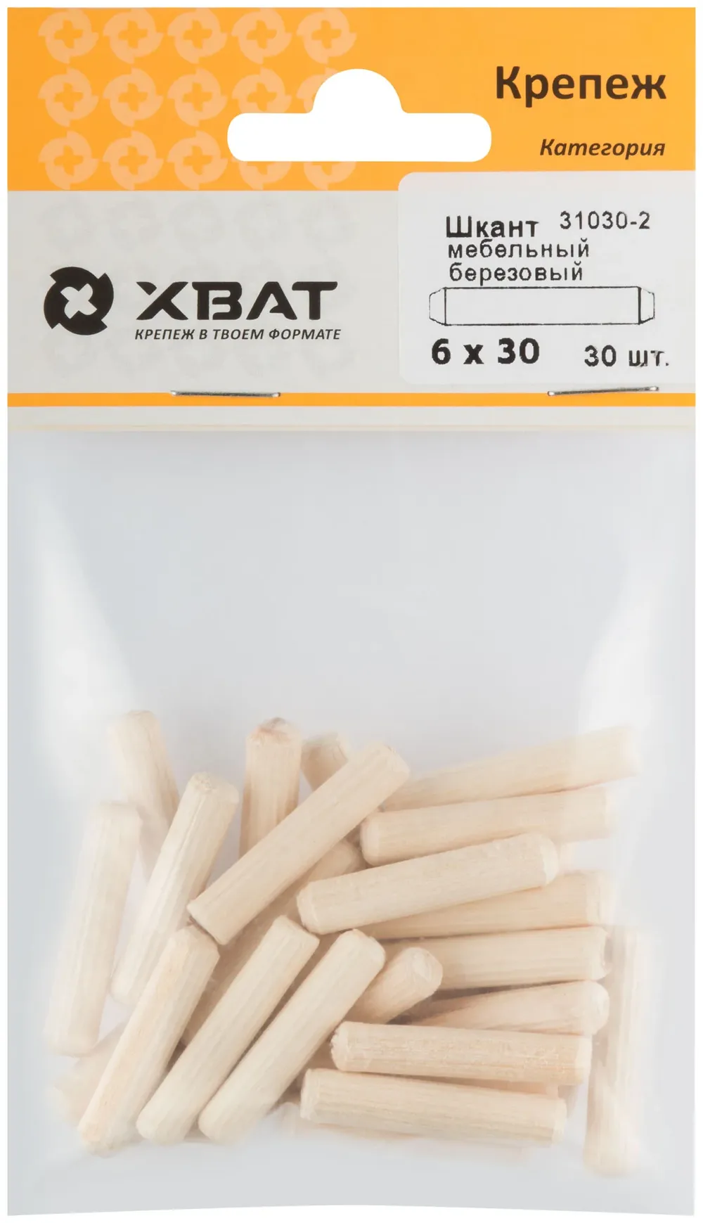Шкант мебельный 6 х 30 березовый (фасовка 30 10.) — товар для строительных и ремонтных работ для строительных, монтажных и хозяйственных задач.