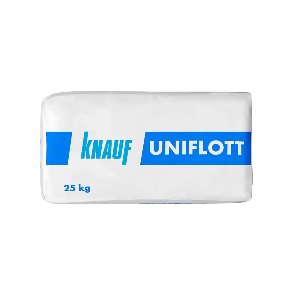 Качественная шпаклевка «Кнауф Унифлот» в упаковках весом 25 кг – изделие высокого качества, используемое для заделки швов между листами гипсокартона.