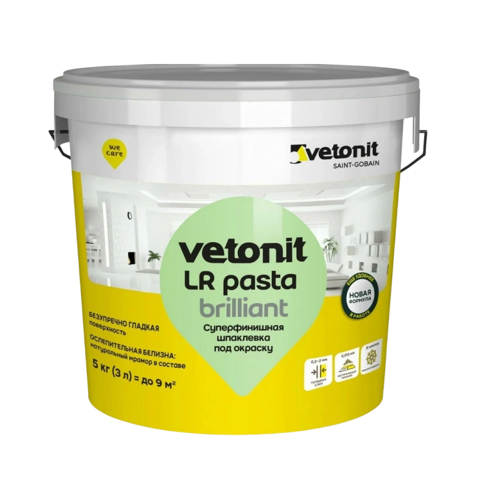 Шпаклёвка готовая суперфинишная Ветонит ЛР паста бриллиант Vetonit LR pasta brilliant, 5 кг — материал для отделочных работ для подготовки, укладки и финишной отделки поверхностей.