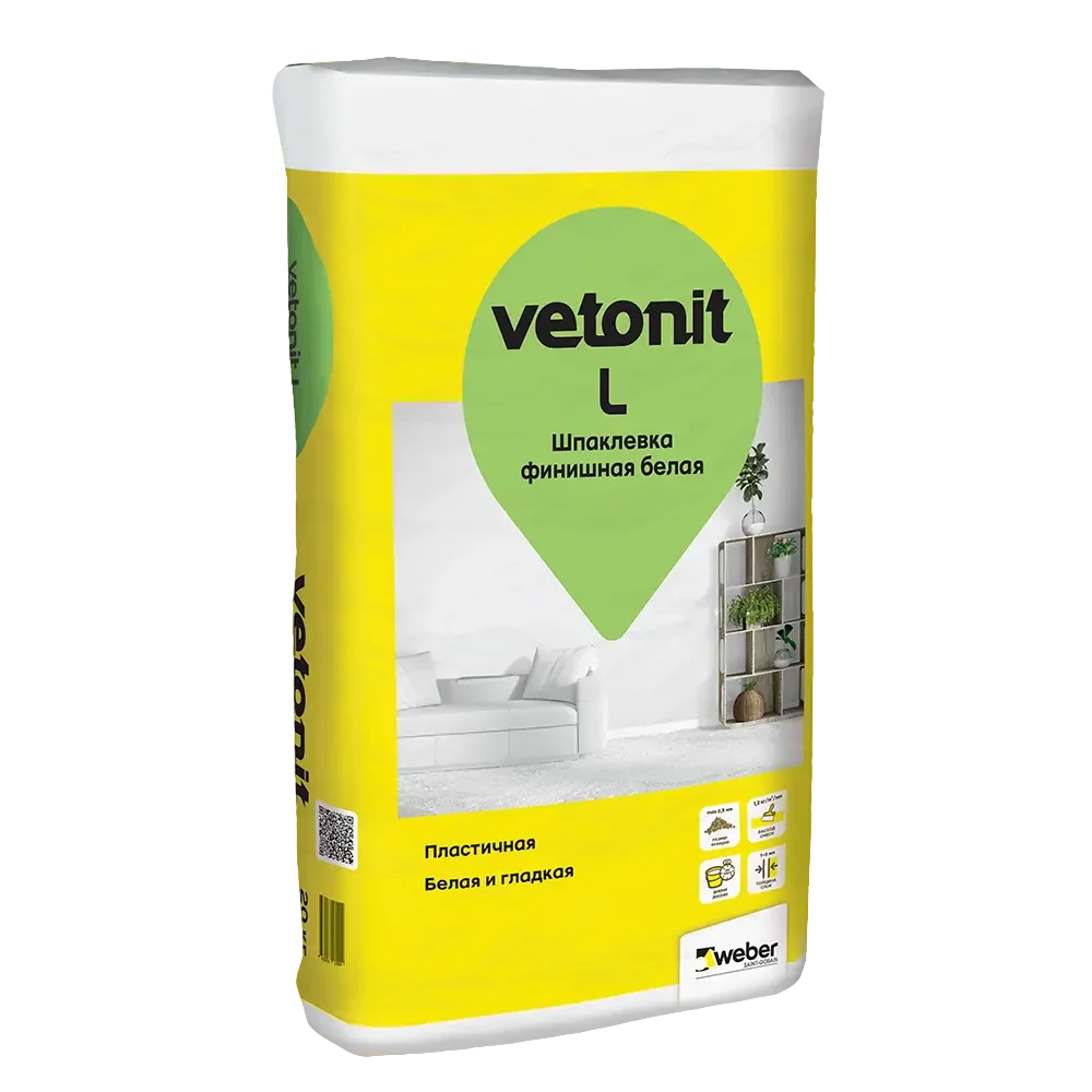 Шпаклевка полимерная Vetonit L финишная белая 20 кг — материал для отделочных работ для подготовки, укладки и финишной отделки поверхностей.