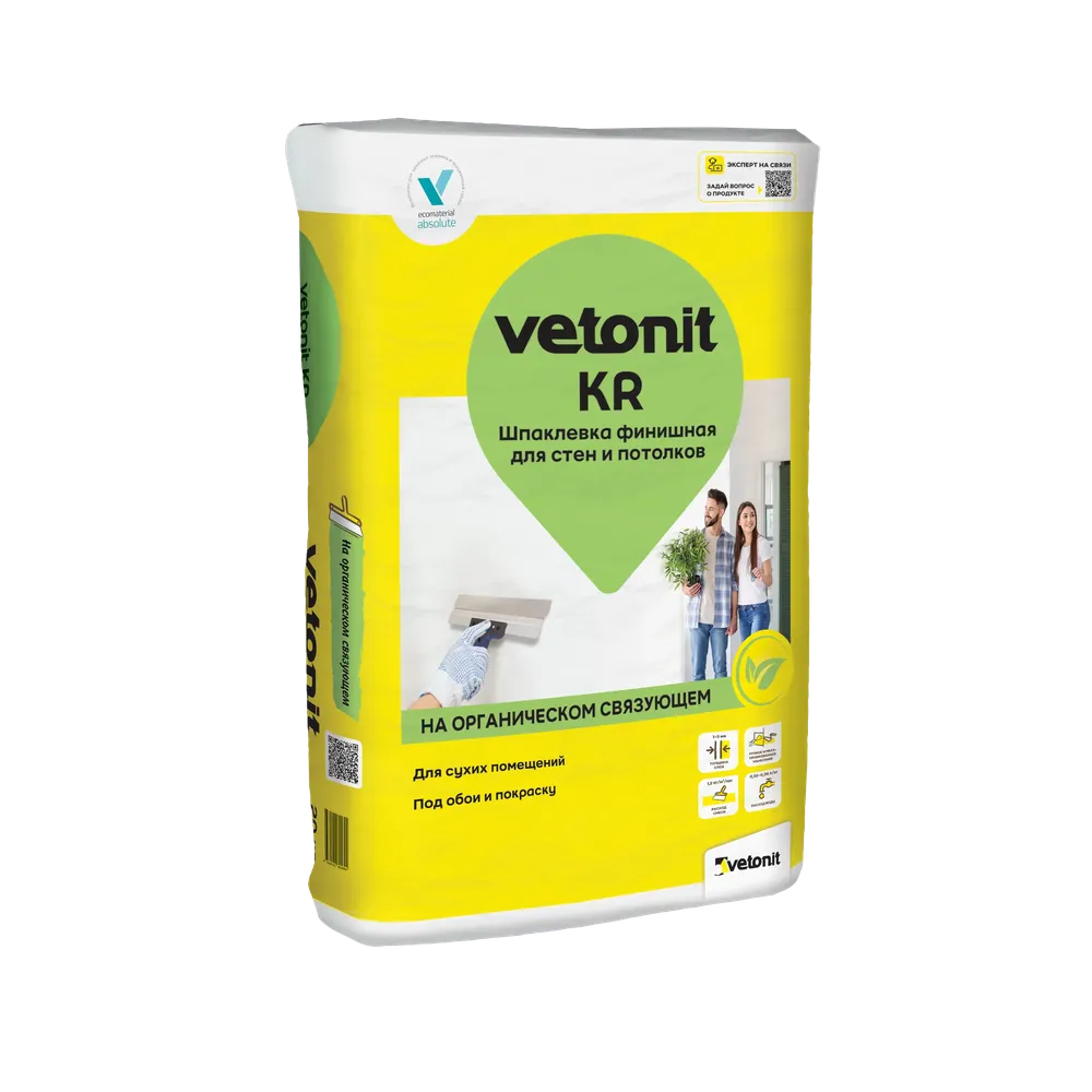 Шпатлёвка финишная Ветонит КР Vetonit KR, 20 кг — материал для отделочных работ для подготовки, укладки и финишной отделки поверхностей.