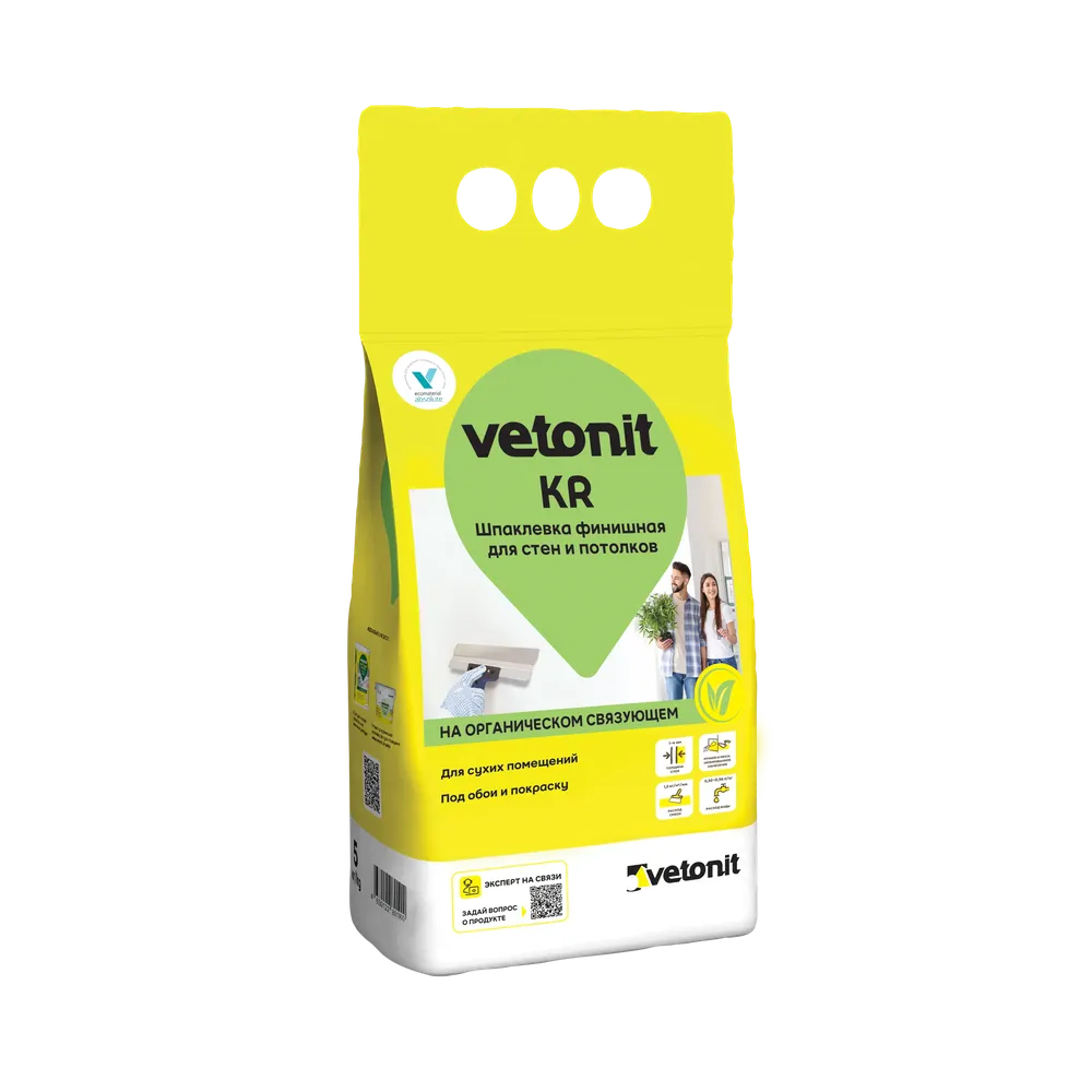 Шпатлёвка финишная Ветонит КР Vetonit KR, 5 кг — материал для отделочных работ для подготовки, укладки и финишной отделки поверхностей.