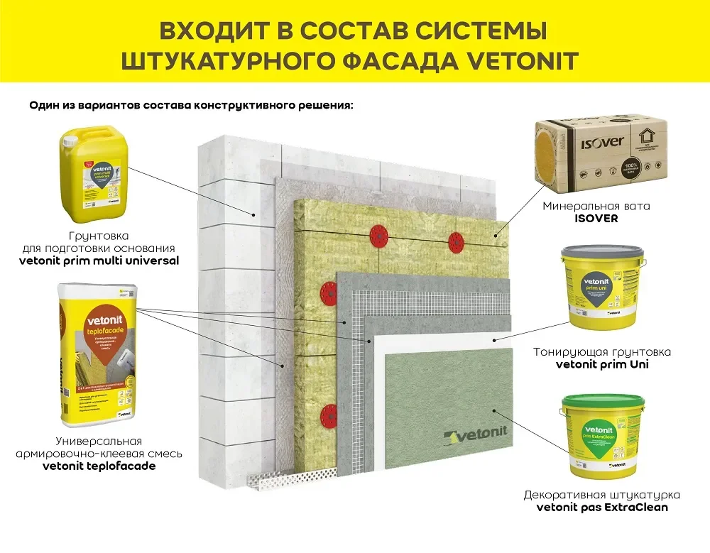Штукатурка Vetonit Teplofacade Ветонит Теплофасад , 20кг — материал для отделочных работ для подготовки, укладки и финишной отделки поверхностей.