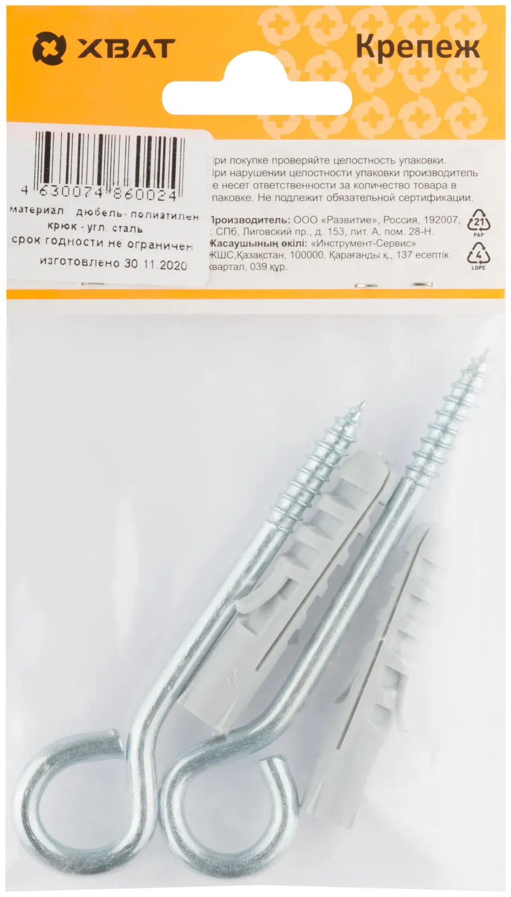 Шуруп-кольцо оцинкованный 10х50/6х60, (фасовка 2 10) — крепёжный элемент для монтажа, фиксации и сборки конструкций.