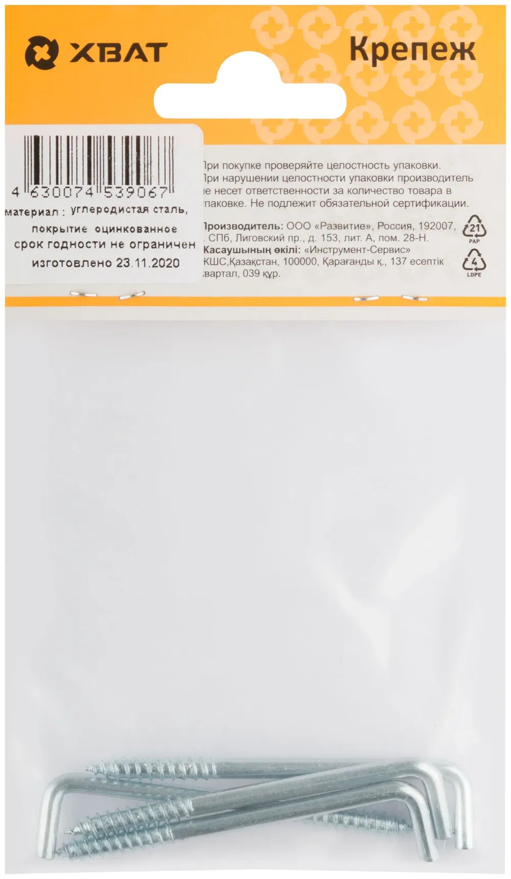 Купить недорого Шуруп-крючок оцинкованный, 4 х 60 (фасовка 4 10) в Москве