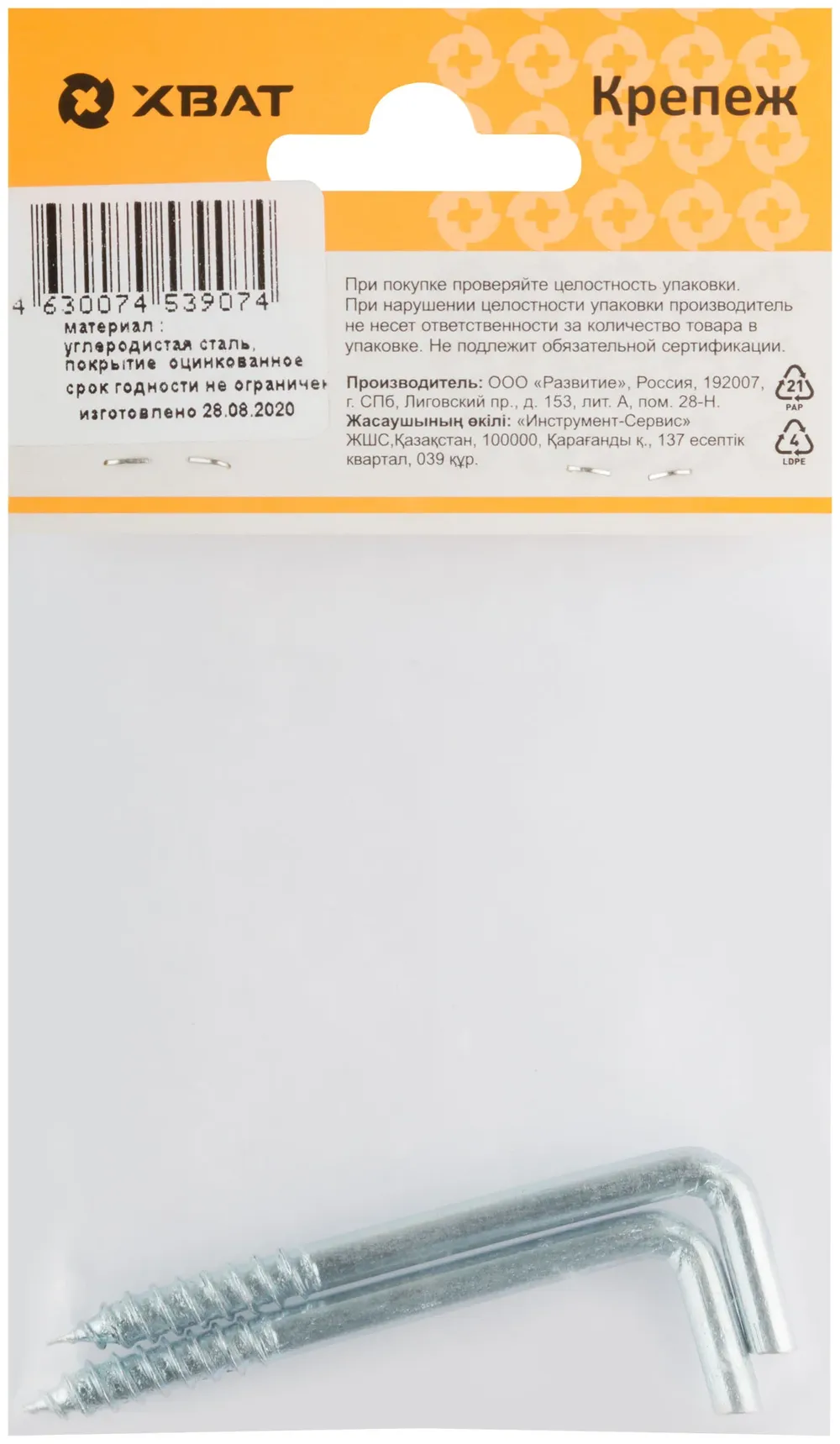 Купить недорого Шуруп-крючок оцинкованный, 6 х 68 (фасовка 2 10) в Москве