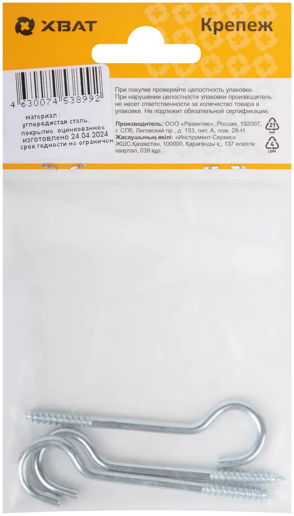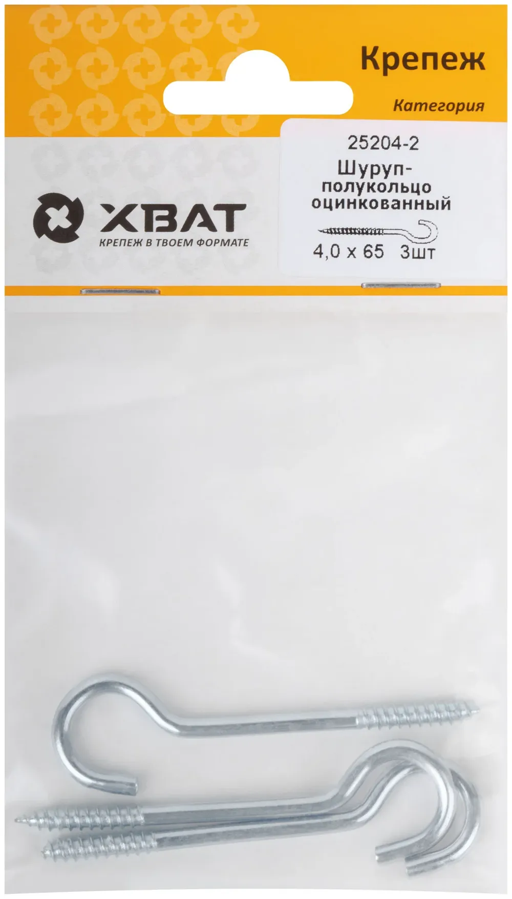 Шуруп-полукольцо оцинкованный 4,0 х 65 (фасовка 3 10) — крепёжный элемент для монтажа, фиксации и сборки конструкций.