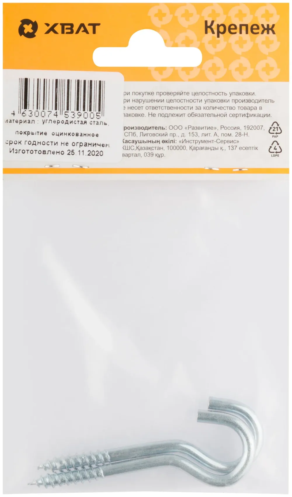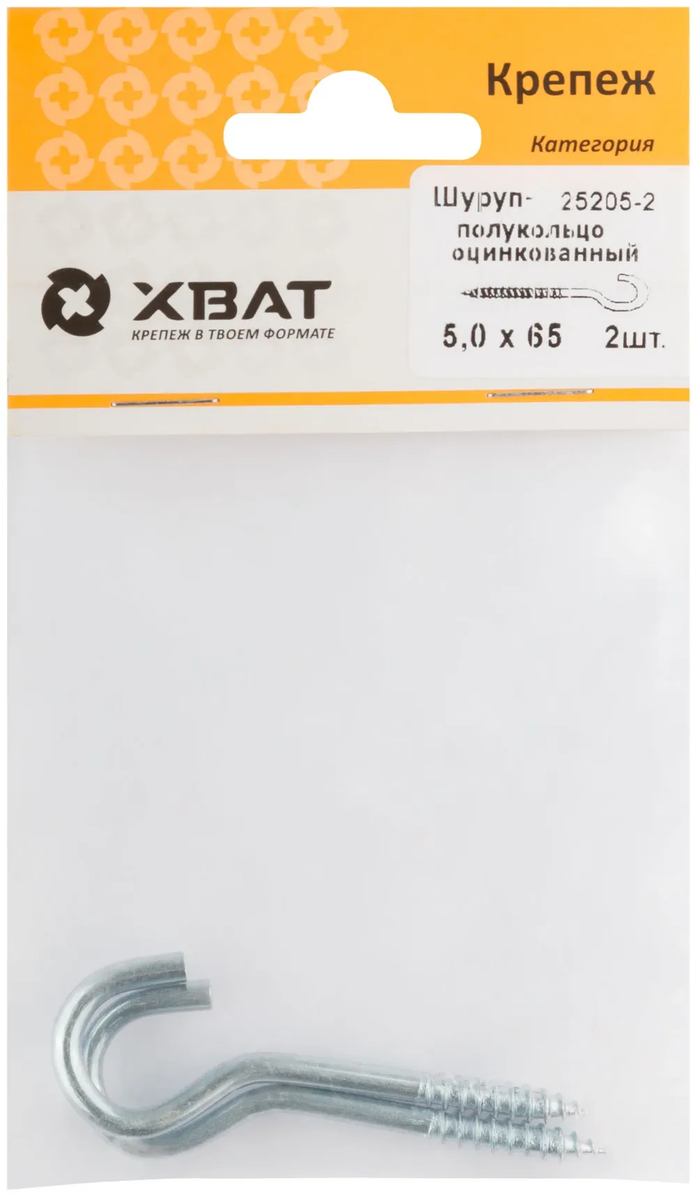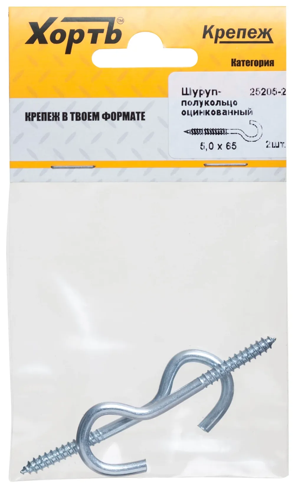 Шуруп-полукольцо оцинкованный 5,0 х 65 (фасовка 2 10) — крепёжный элемент для монтажа, фиксации и сборки конструкций.