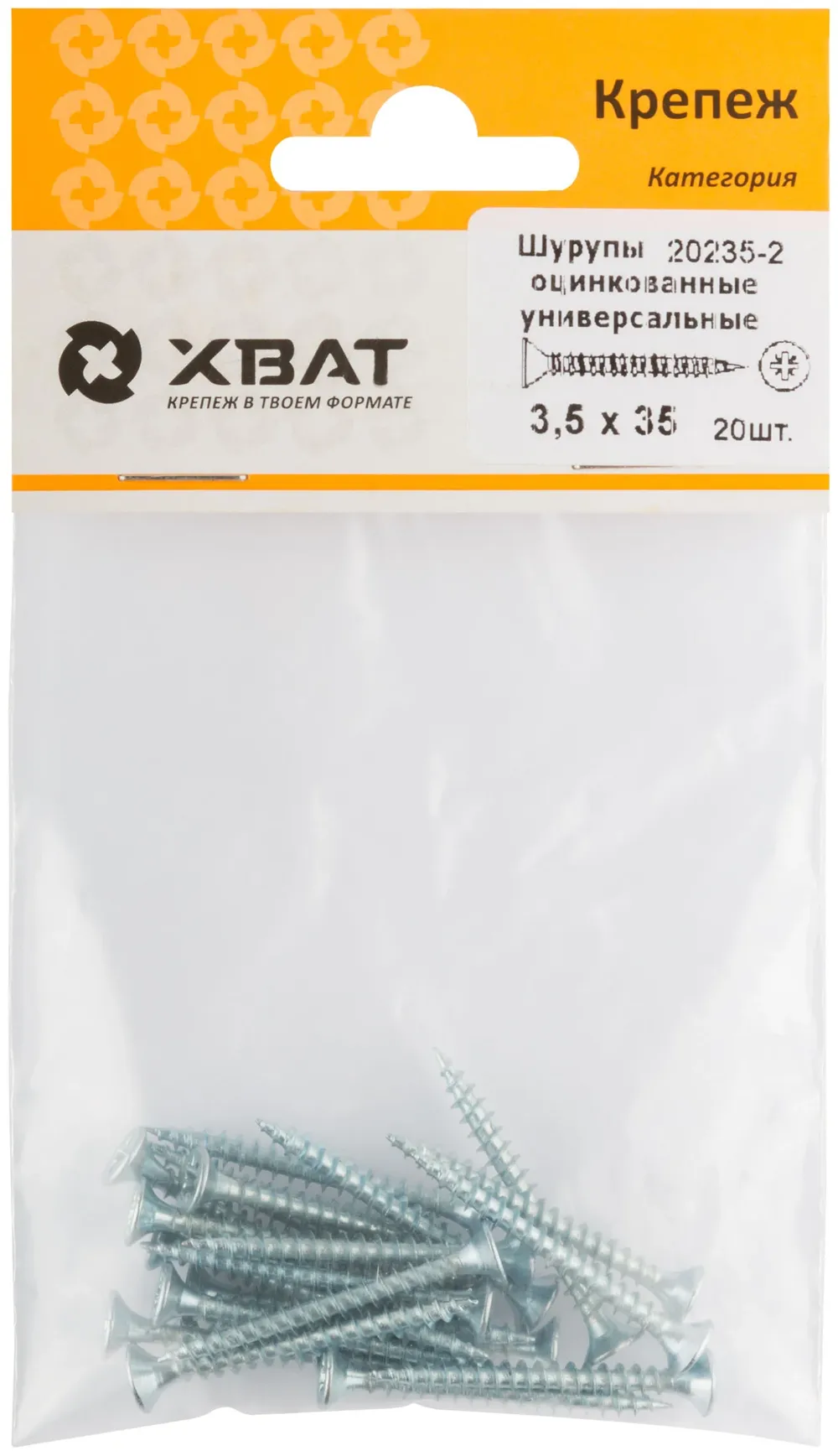 Шурупы оцинкованные, универсальные 3.5 х 35 (фасовка 20 10) — крепёжный элемент для монтажа, фиксации и сборки конструкций.