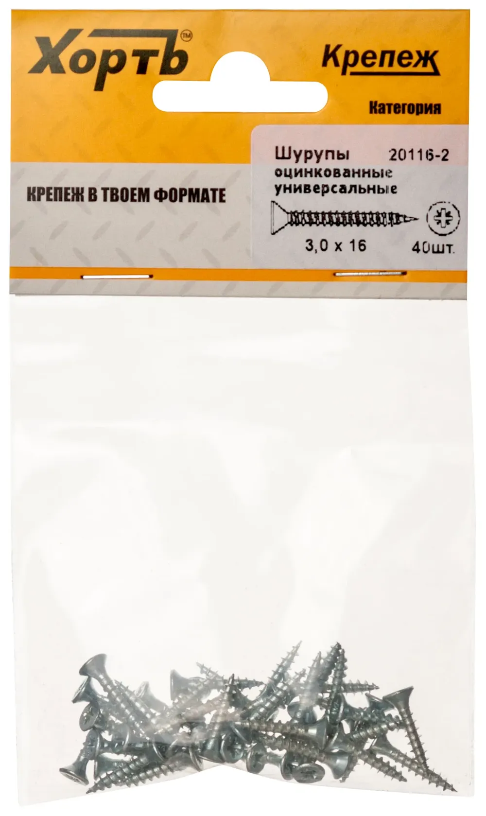 Шурупы оцинкованные, универсальные 3 х 16 (фасовка 40 10) — крепёжный элемент для монтажа, фиксации и сборки конструкций.