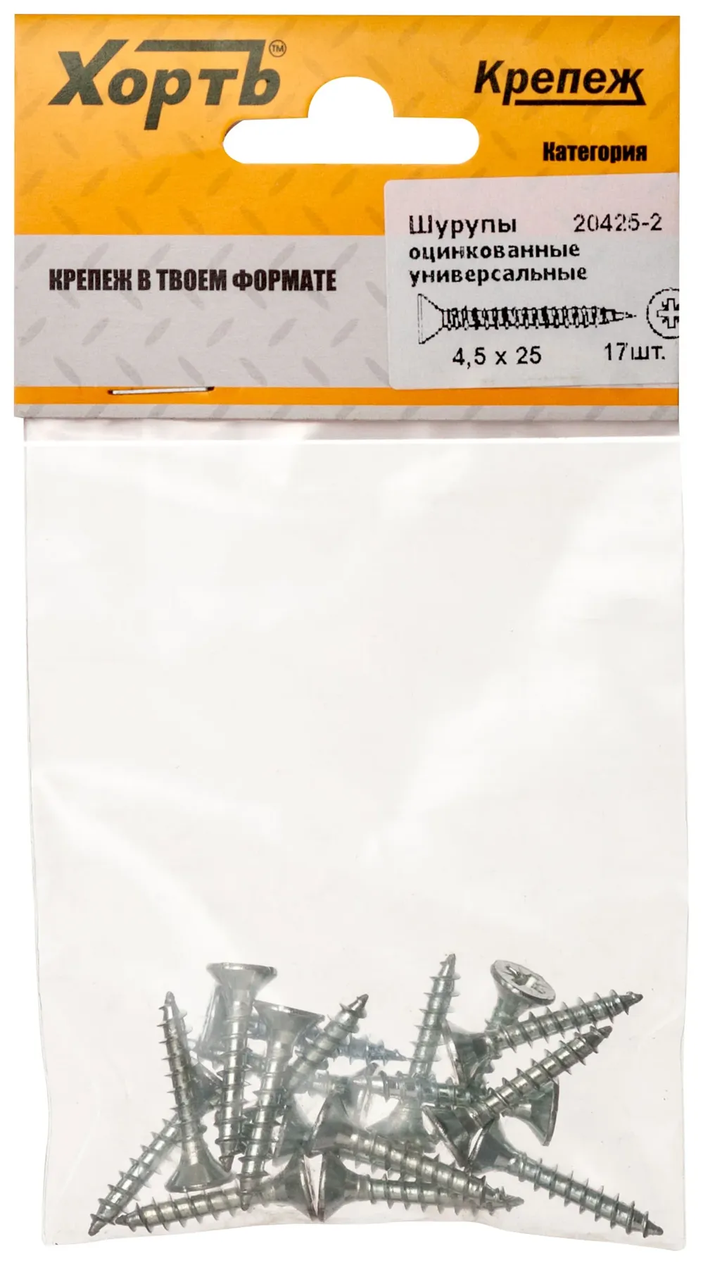 Шурупы оцинкованные, универсальные 4.5 х 25 ( фасовка 17 10.) — крепёжный элемент для монтажа, фиксации и сборки конструкций.