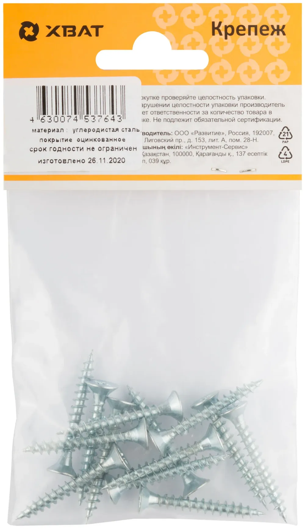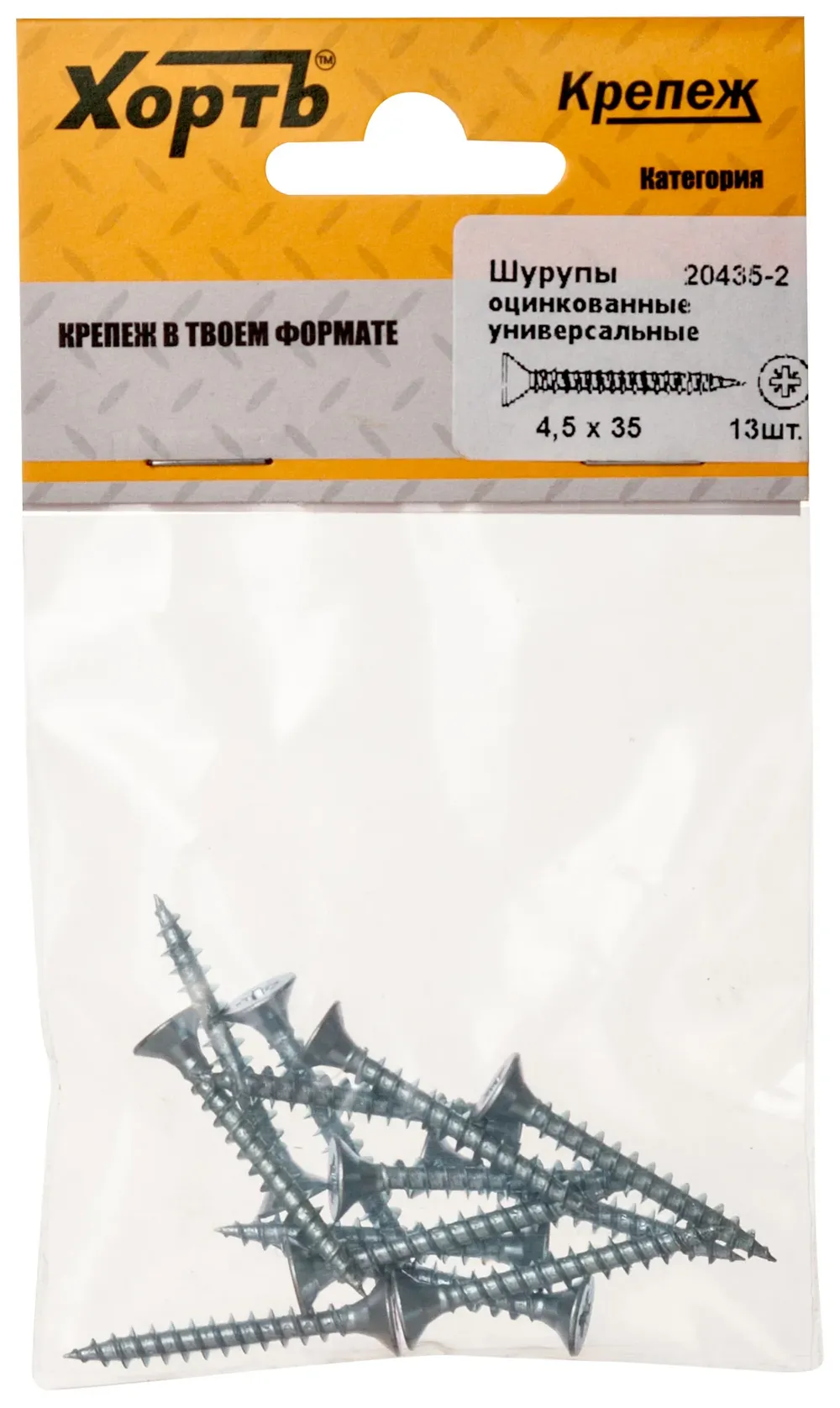 Шурупы оцинкованные, универсальные 4.5 х 35 ( фасовка 13 10.) — крепёжный элемент для монтажа, фиксации и сборки конструкций.