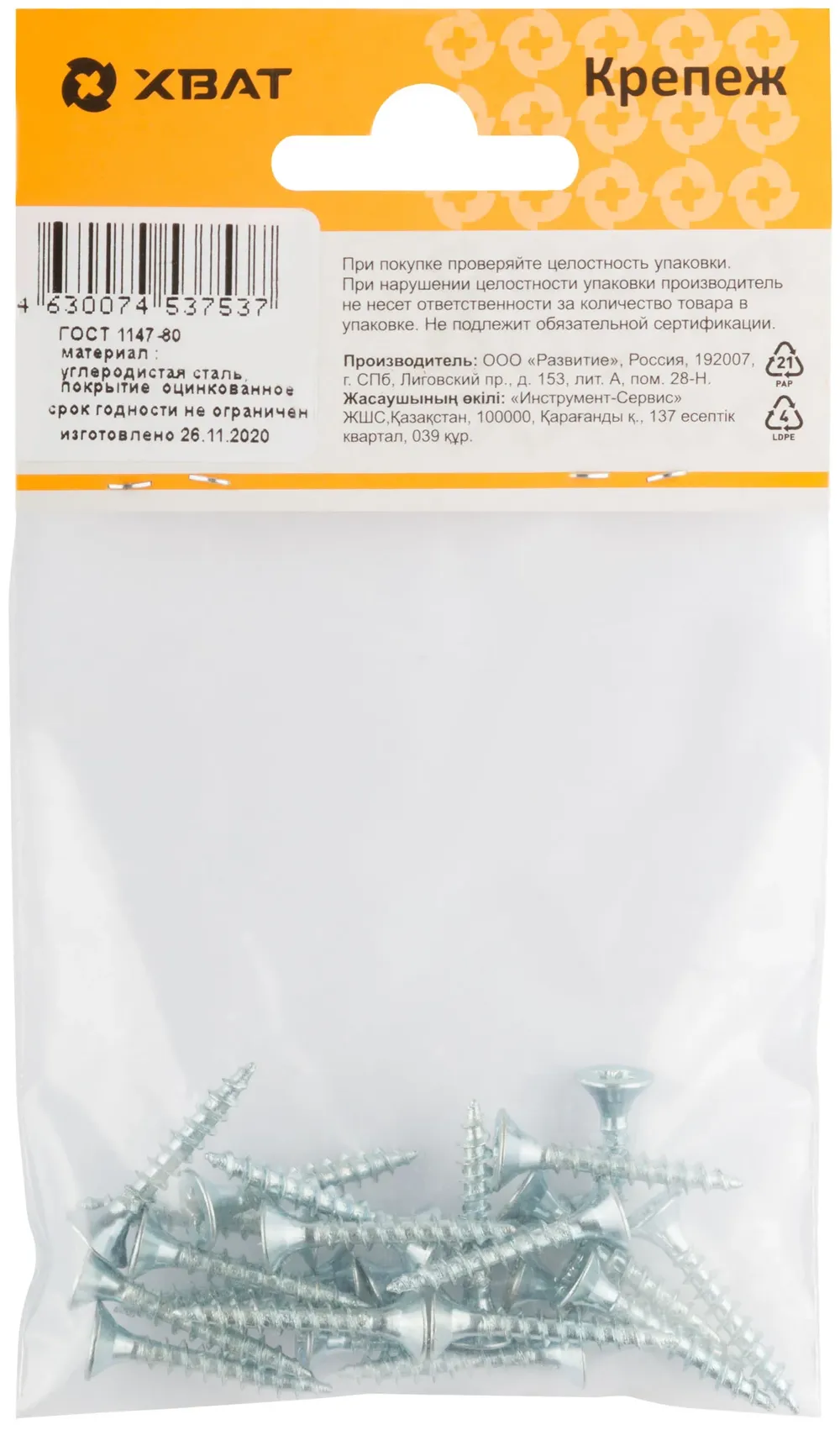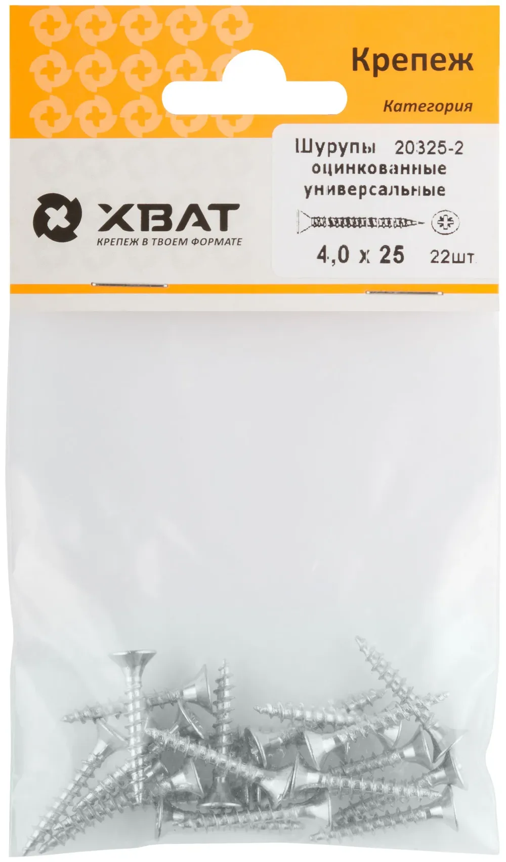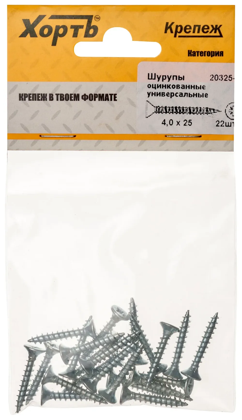 Шурупы оцинкованные, универсальные 4 х 25 (фасовка 22 10) — крепёжный элемент для монтажа, фиксации и сборки конструкций.
