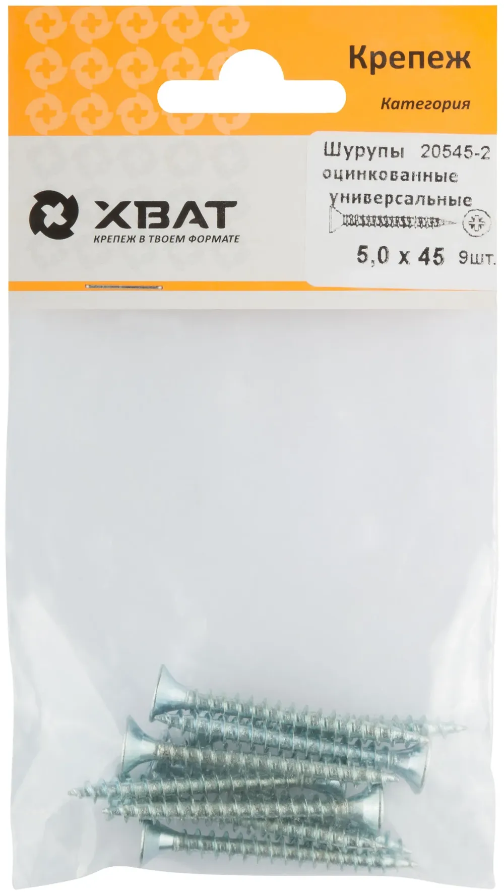 Шурупы оцинкованные, универсальные 5 х 45 ( фасовка 9 10.) — крепёжный элемент для монтажа, фиксации и сборки конструкций.