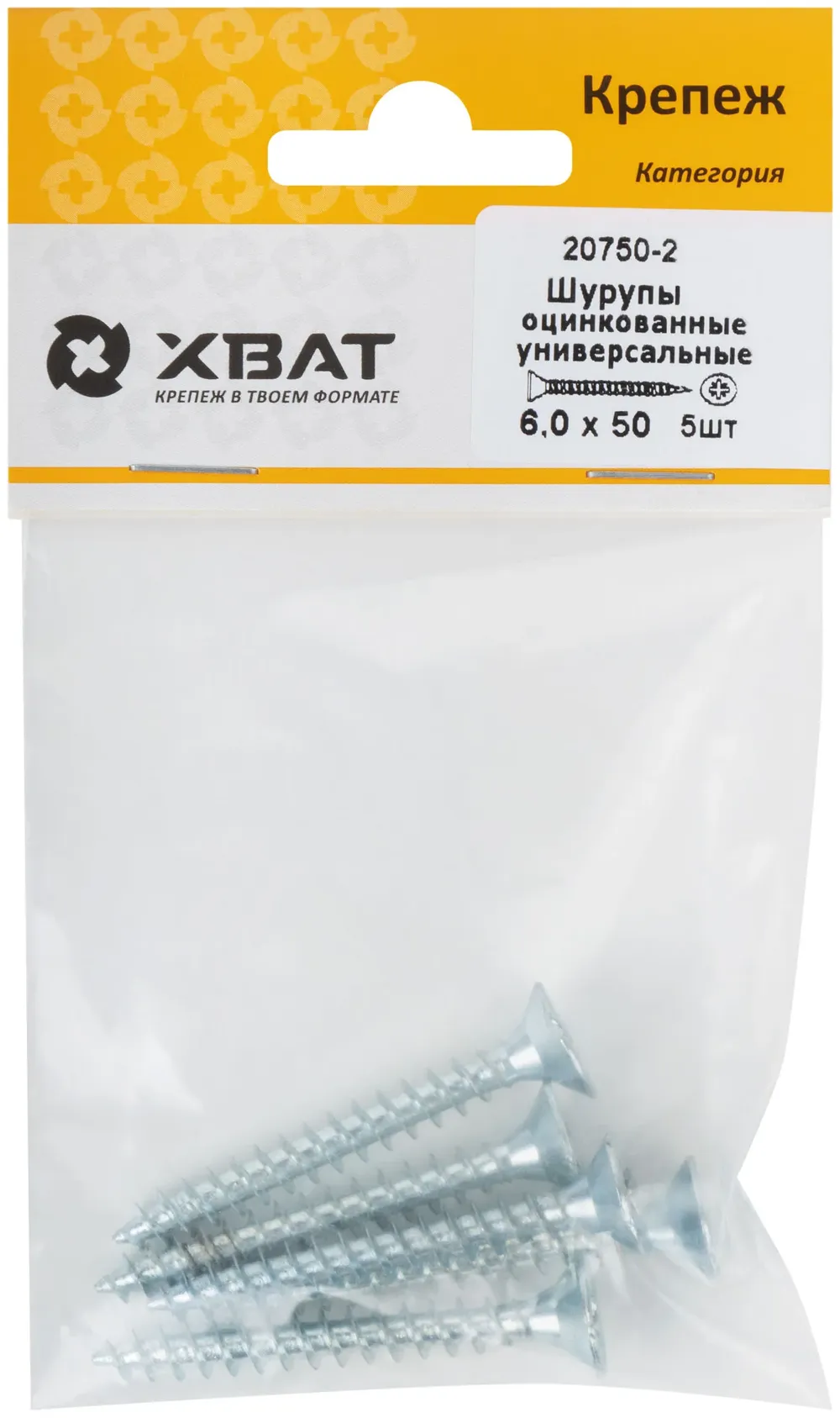 Шурупы оцинкованные, универсальные 6 х 50 ( фасовка 5 10.) — крепёжный элемент для монтажа, фиксации и сборки конструкций.