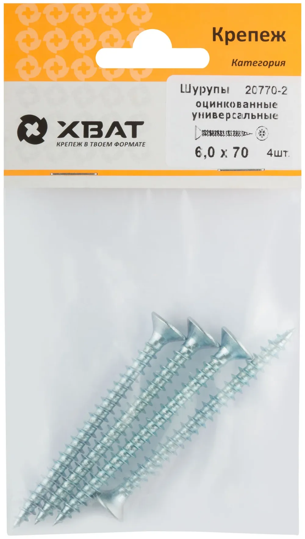 Шурупы оцинкованные, универсальные 6 х 70 ( фасовка 4 10.) — крепёжный элемент для монтажа, фиксации и сборки конструкций.