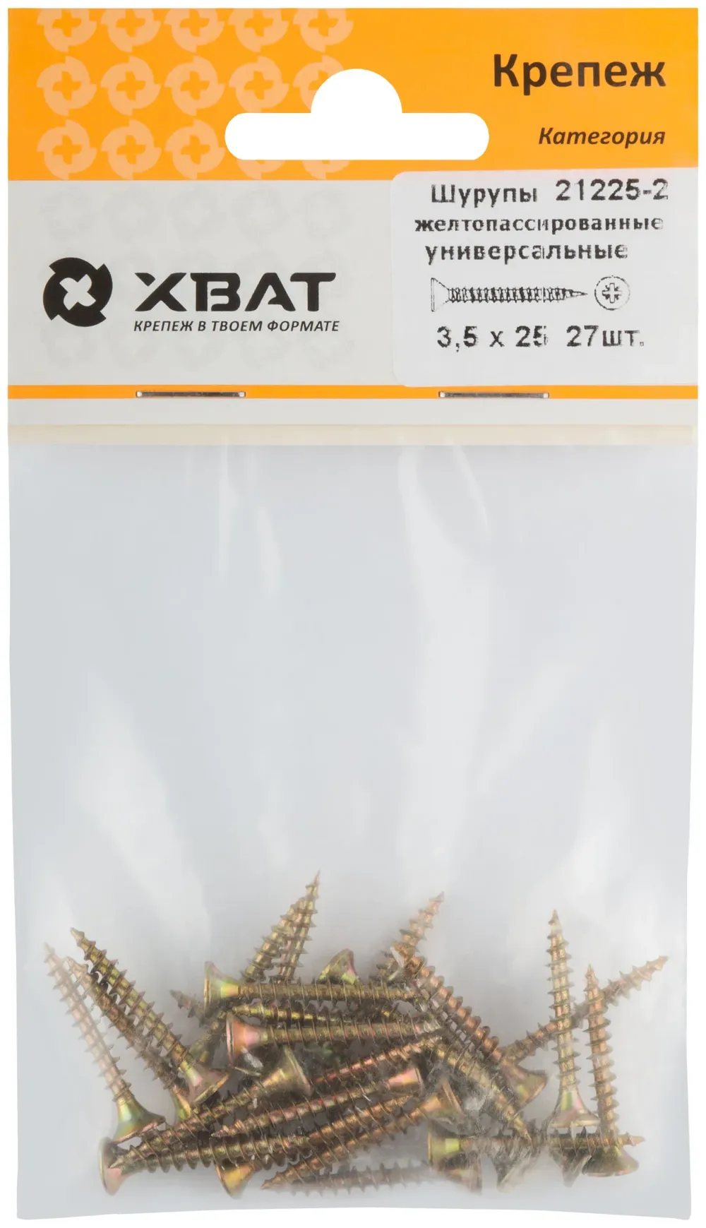 Шурупы желтопассированные, универсальные 3.5 х 25 ( фасовка 27 шт.) — крепёжный элемент для монтажа, фиксации и сборки конструкций.