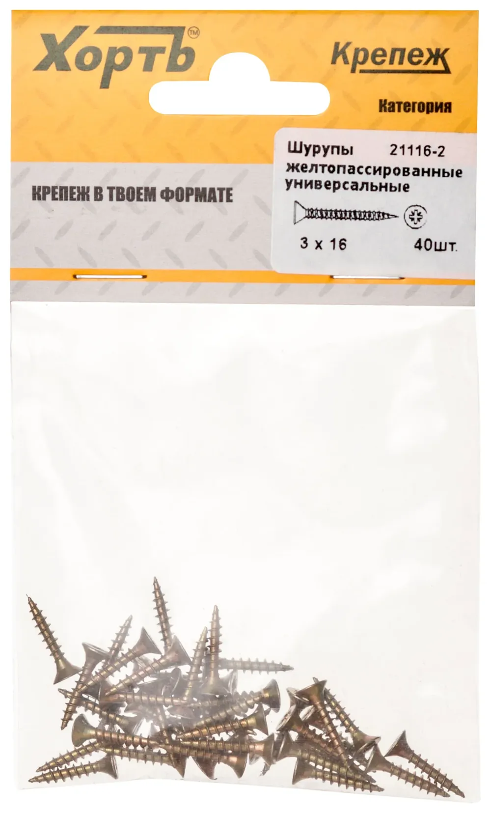 Шурупы желтопассированные, универсальные 3 х 16 ( фасовка 40 шт.) — крепёжный элемент для монтажа, фиксации и сборки конструкций.