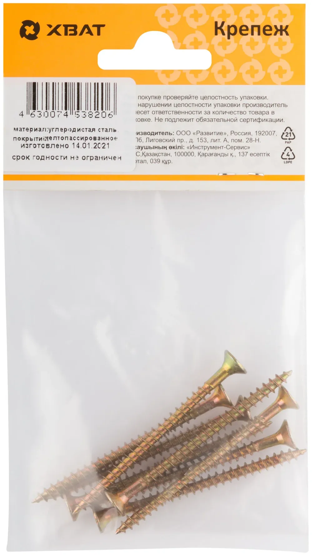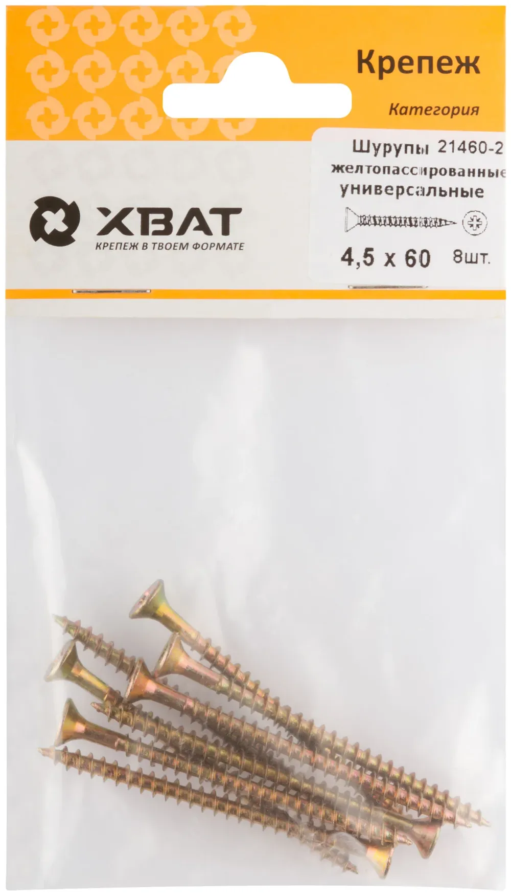 Шурупы желтопассированные, универсальные 4.5 х 60 ( фасовка 8 шт.) — крепёжный элемент для монтажа, фиксации и сборки конструкций.