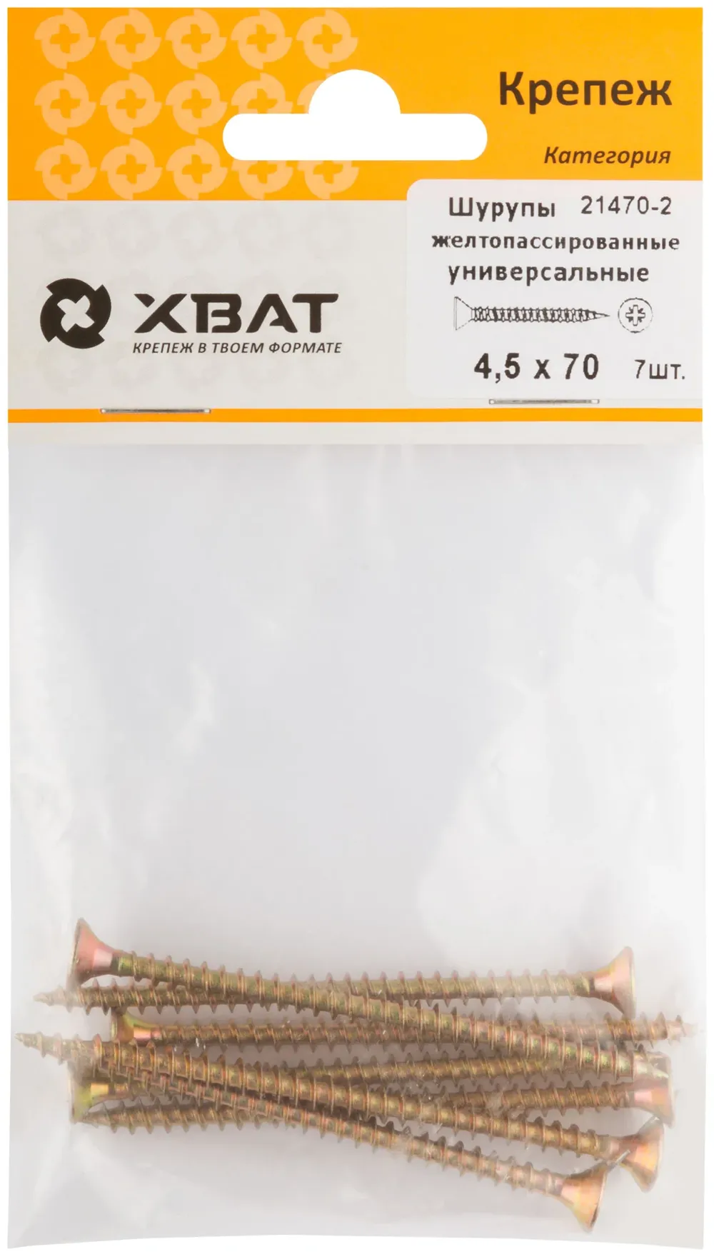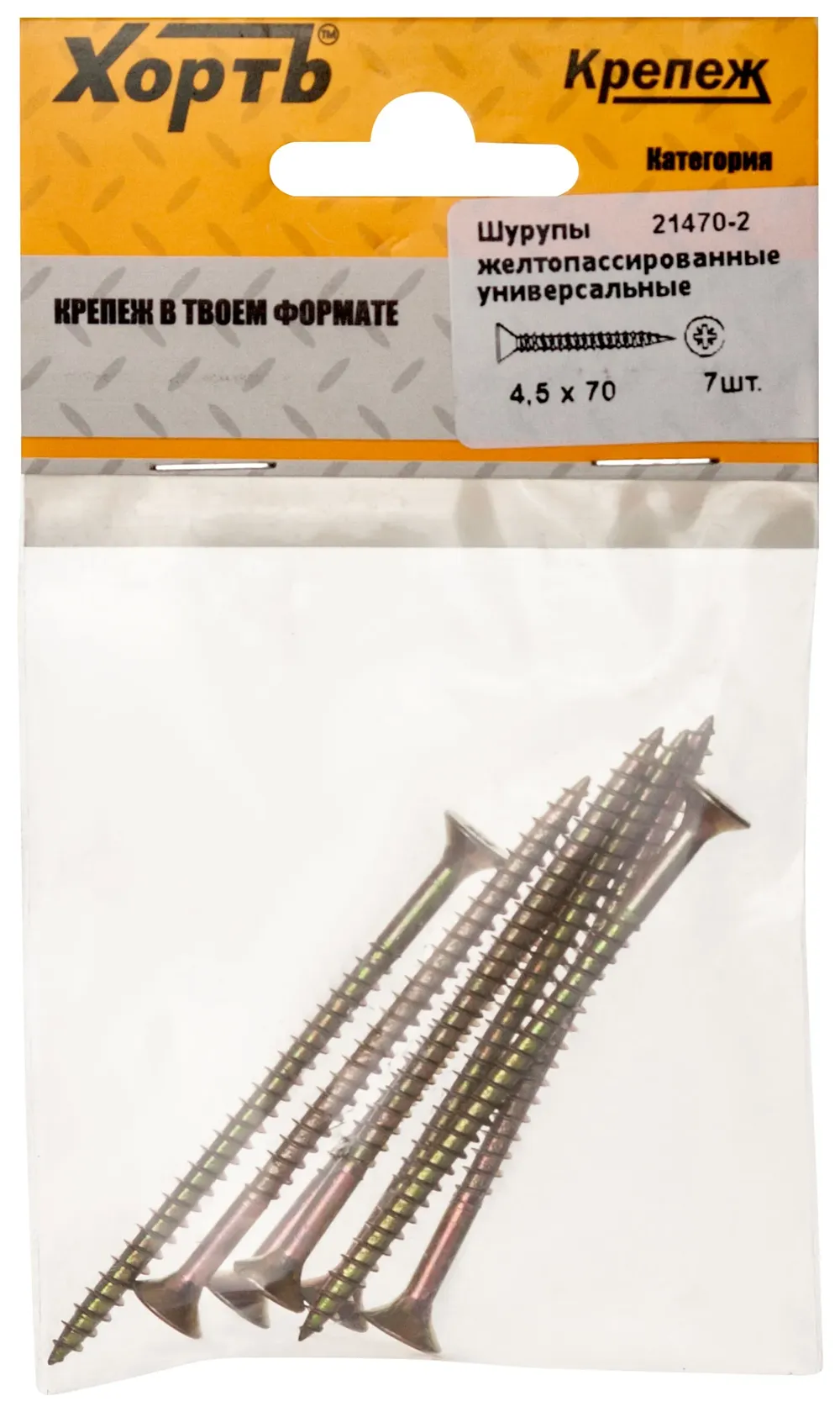 Шурупы желтопассированные, универсальные 4.5 х 70 ( фасовка 7 шт.) — крепёжный элемент для монтажа, фиксации и сборки конструкций.