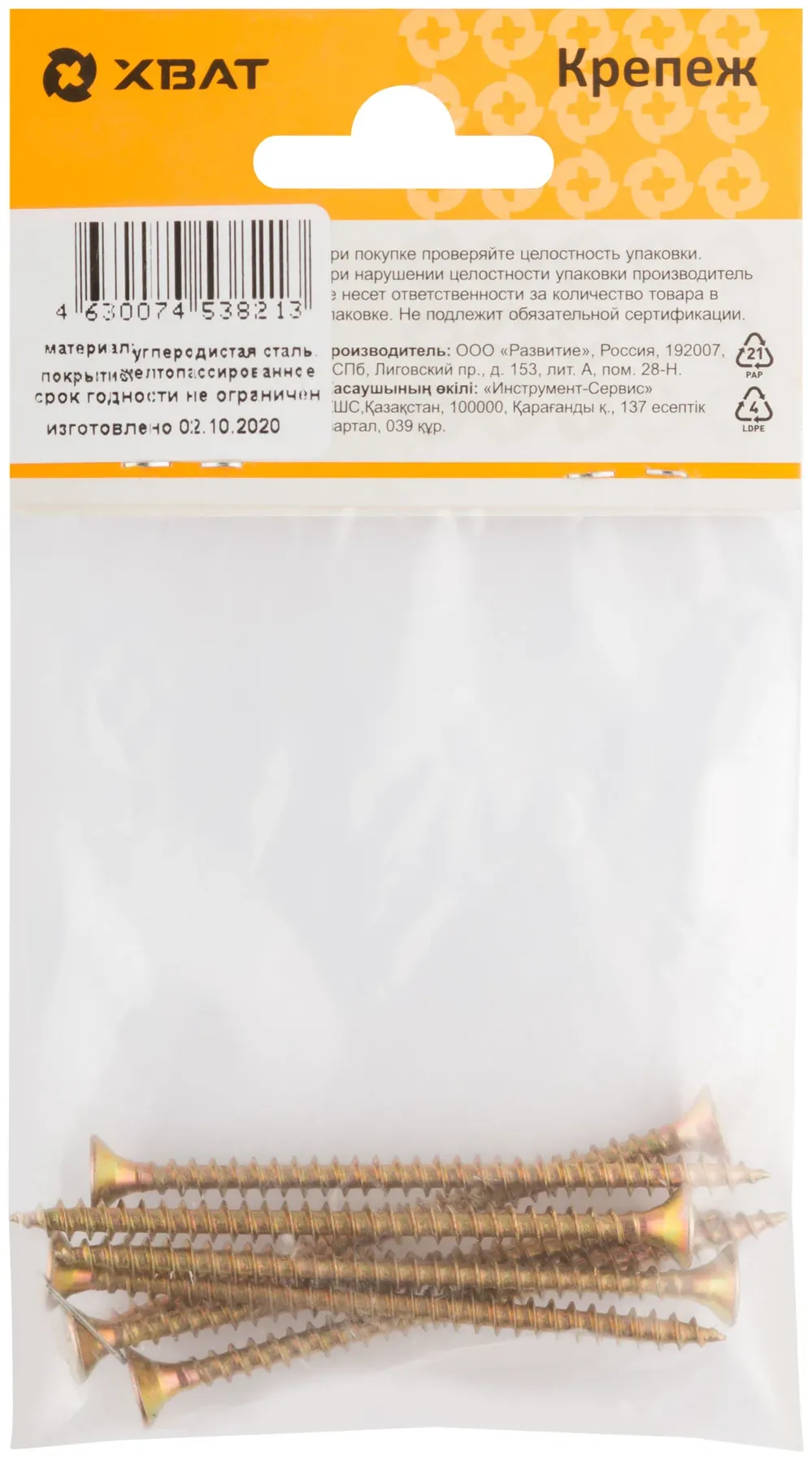 Купить недорого Шурупы желтопассированные, универсальные 4.5 х 70 ( фасовка 7 шт.) в Москве