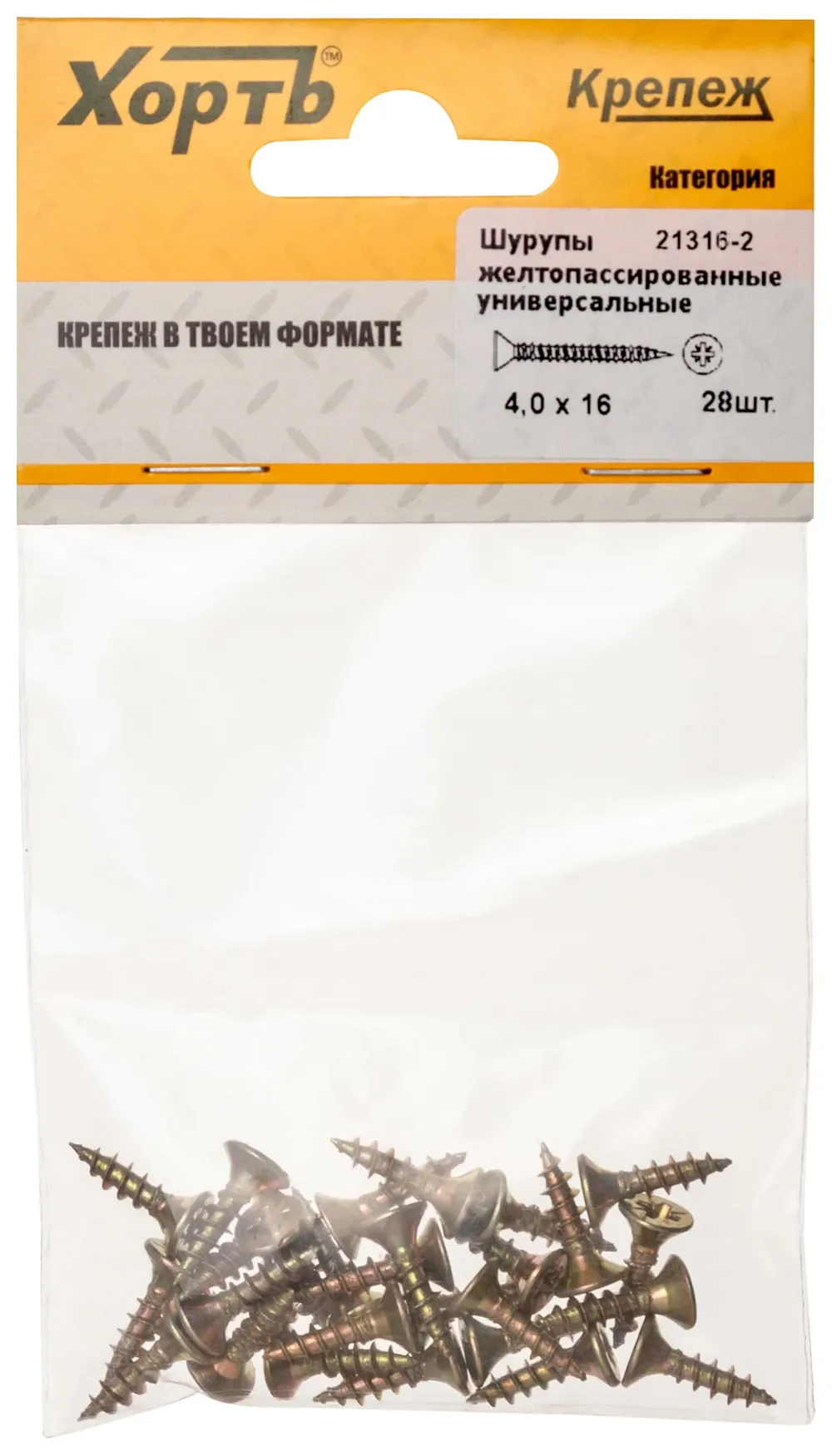 Шурупы желтопассированные, универсальные 4 х 16 ( фасовка 28 шт.) — крепёжный элемент для монтажа, фиксации и сборки конструкций.