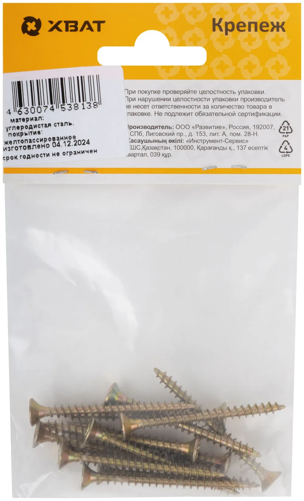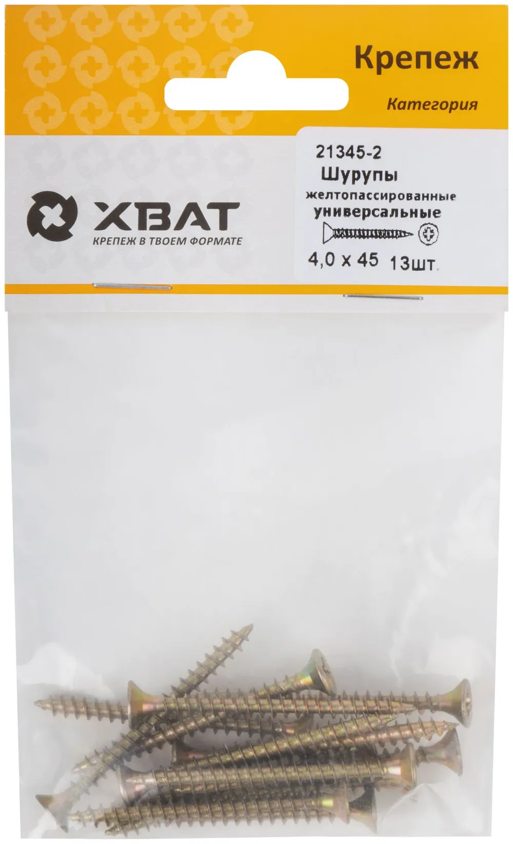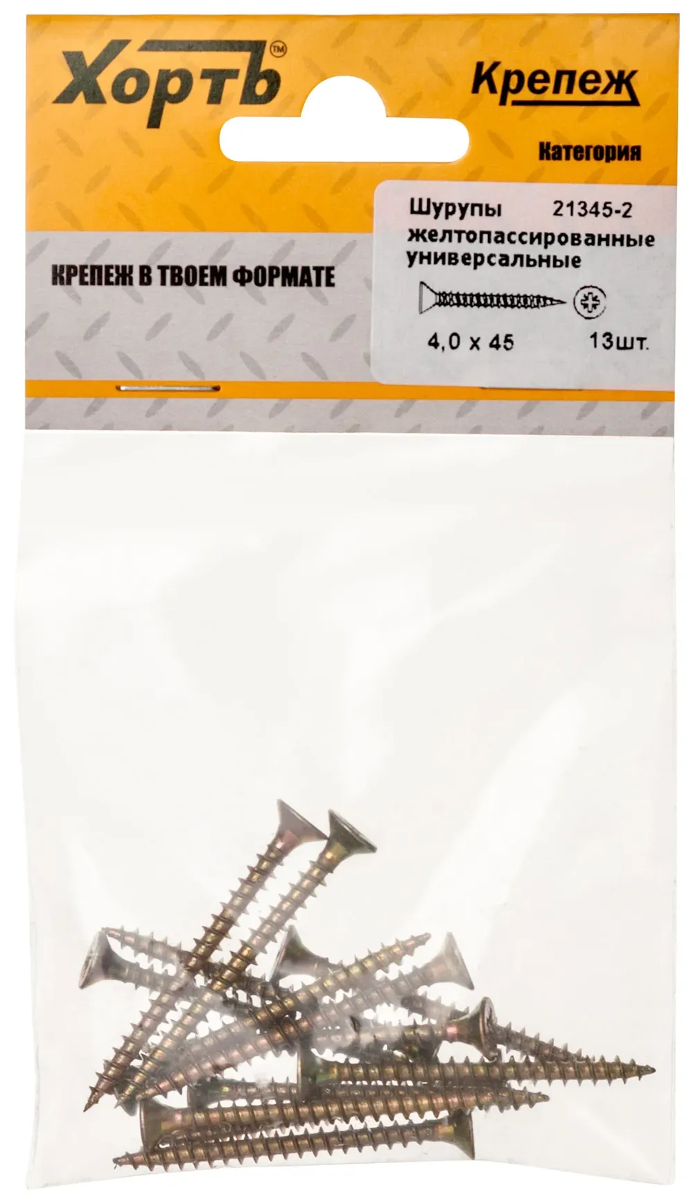 Шурупы желтопассированные, универсальные 4 х 45 ( фасовка 13 шт.) — крепёжный элемент для монтажа, фиксации и сборки конструкций.