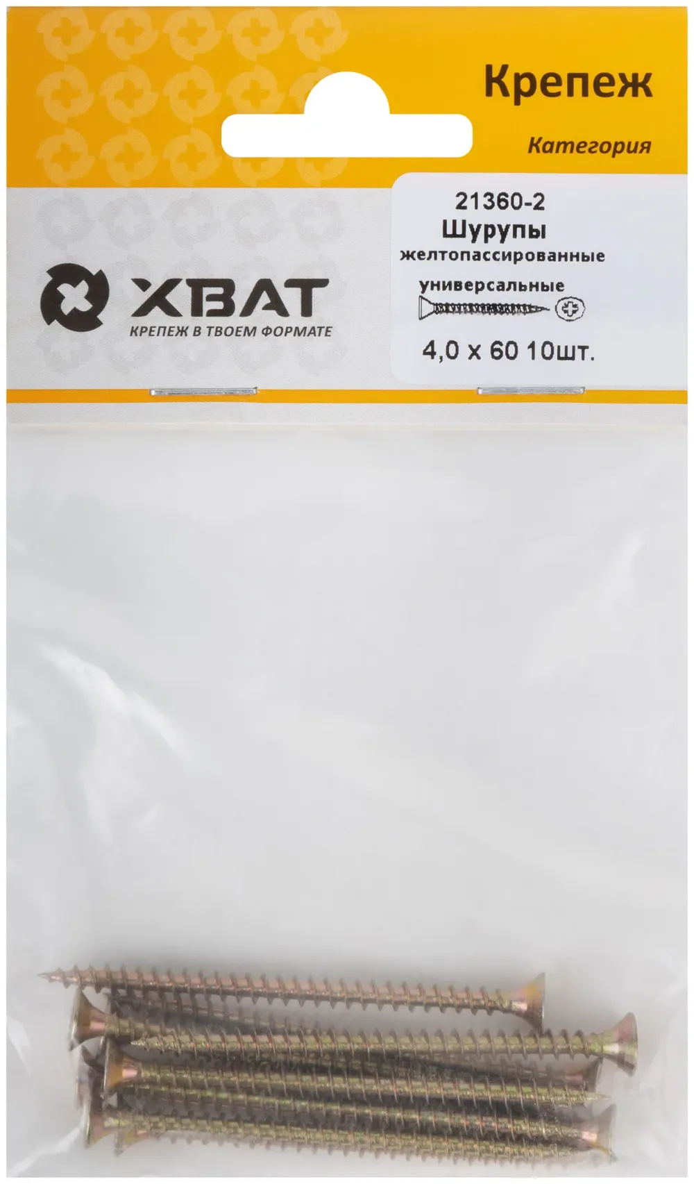 Шурупы желтопассированные, универсальные 4 х 60 ( фасовка 10 шт.) — крепёжный элемент для монтажа, фиксации и сборки конструкций.