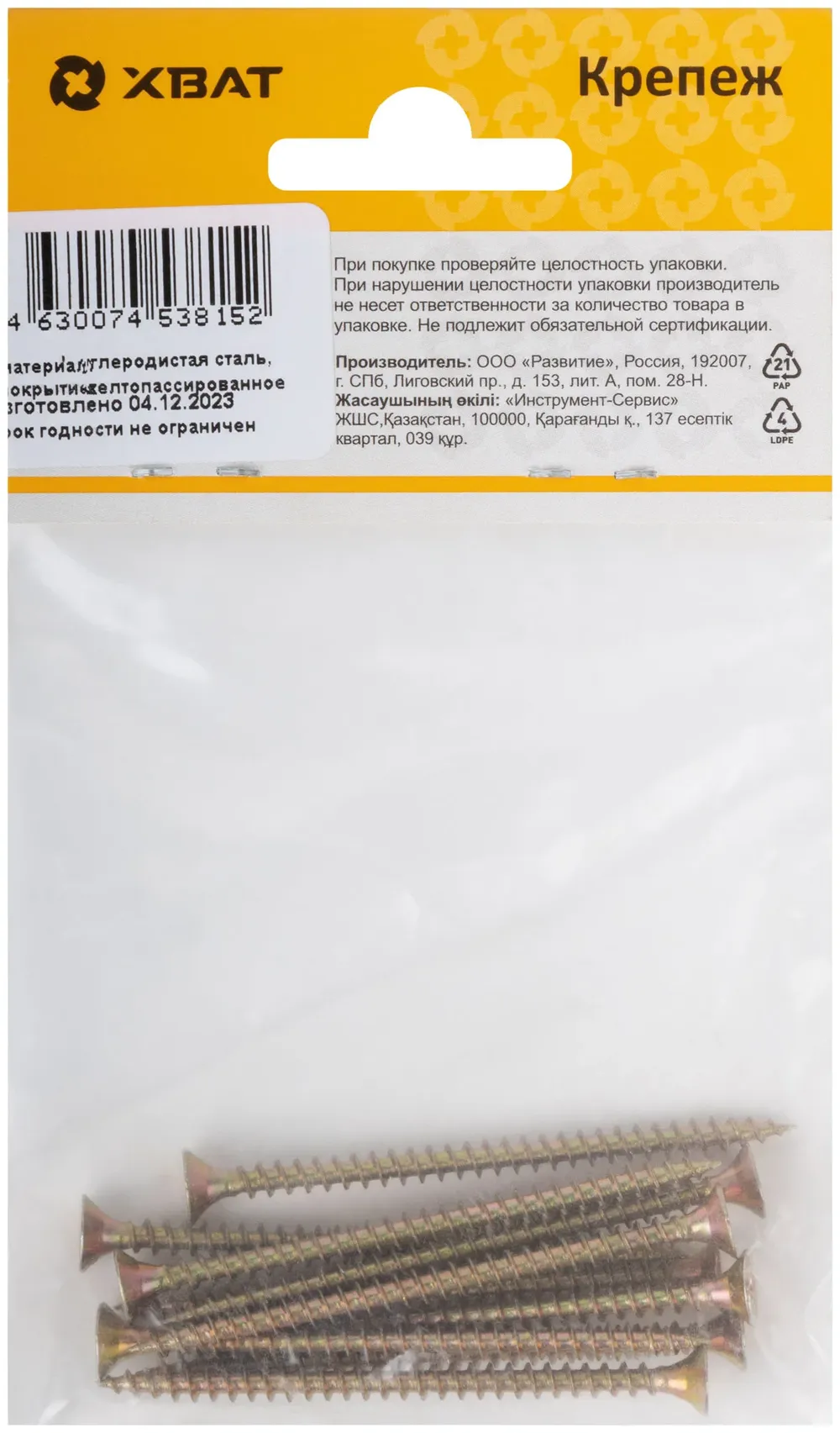 Купить недорого Шурупы желтопассированные, универсальные 4 х 60 ( фасовка 10 шт.) в Москве