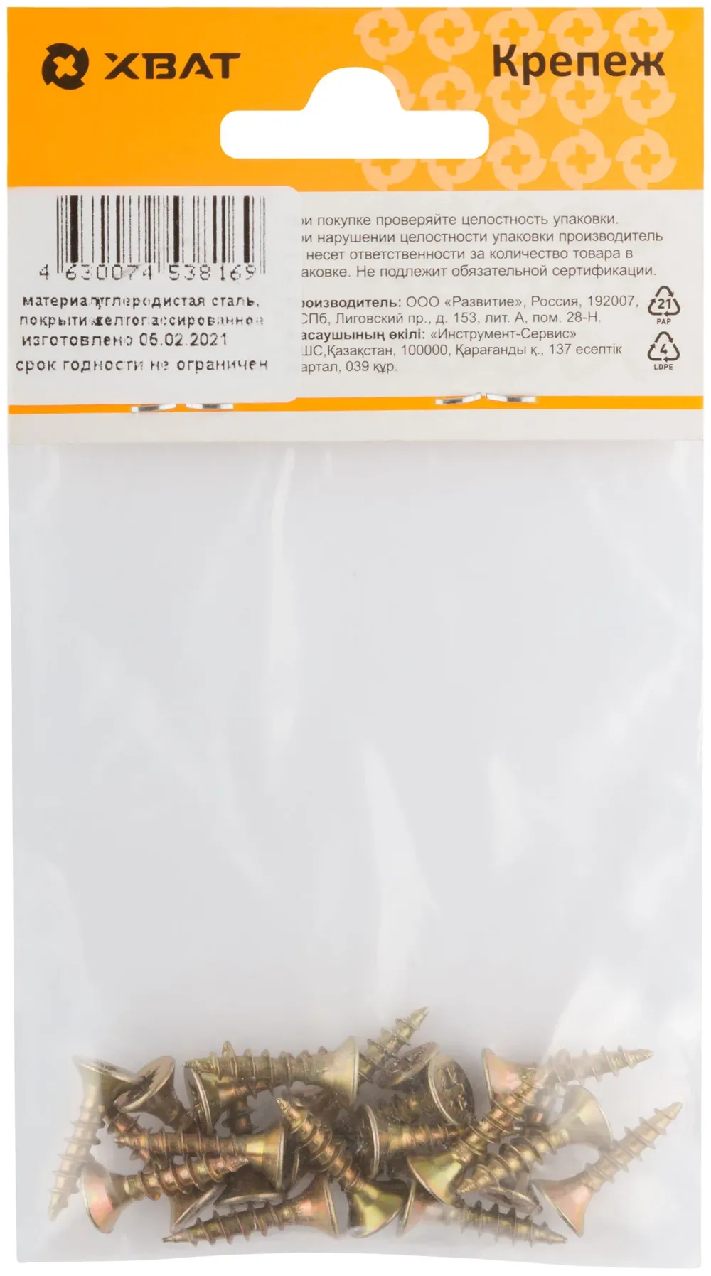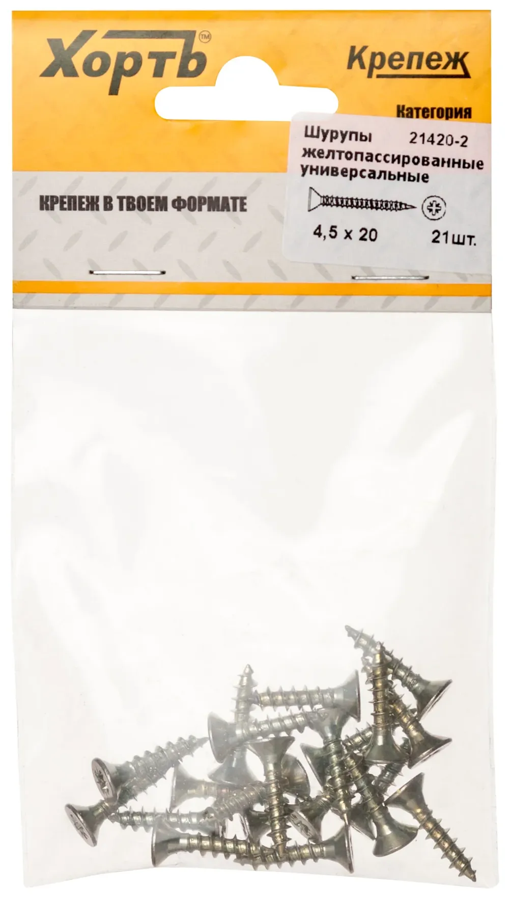 Шурупы желтопассированные, универсальные 4,5 х 20 (фасовка 21шт ) — крепёжный элемент для монтажа, фиксации и сборки конструкций.