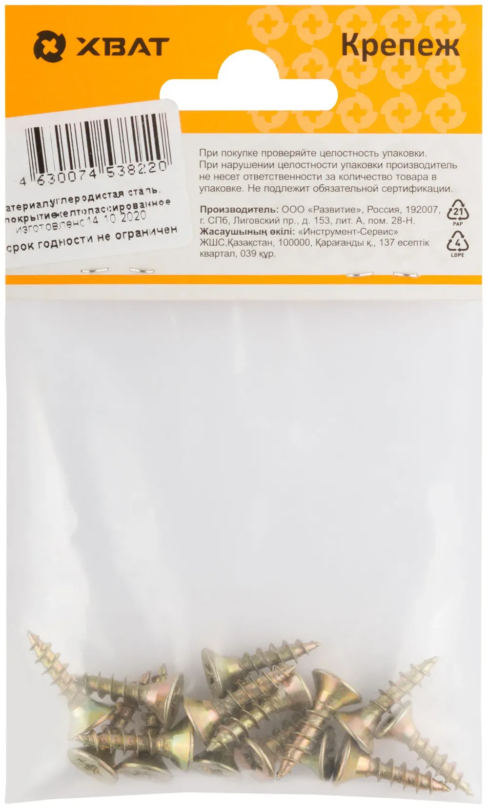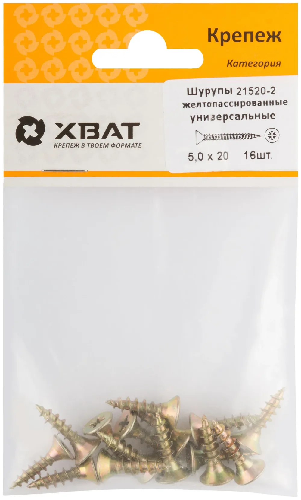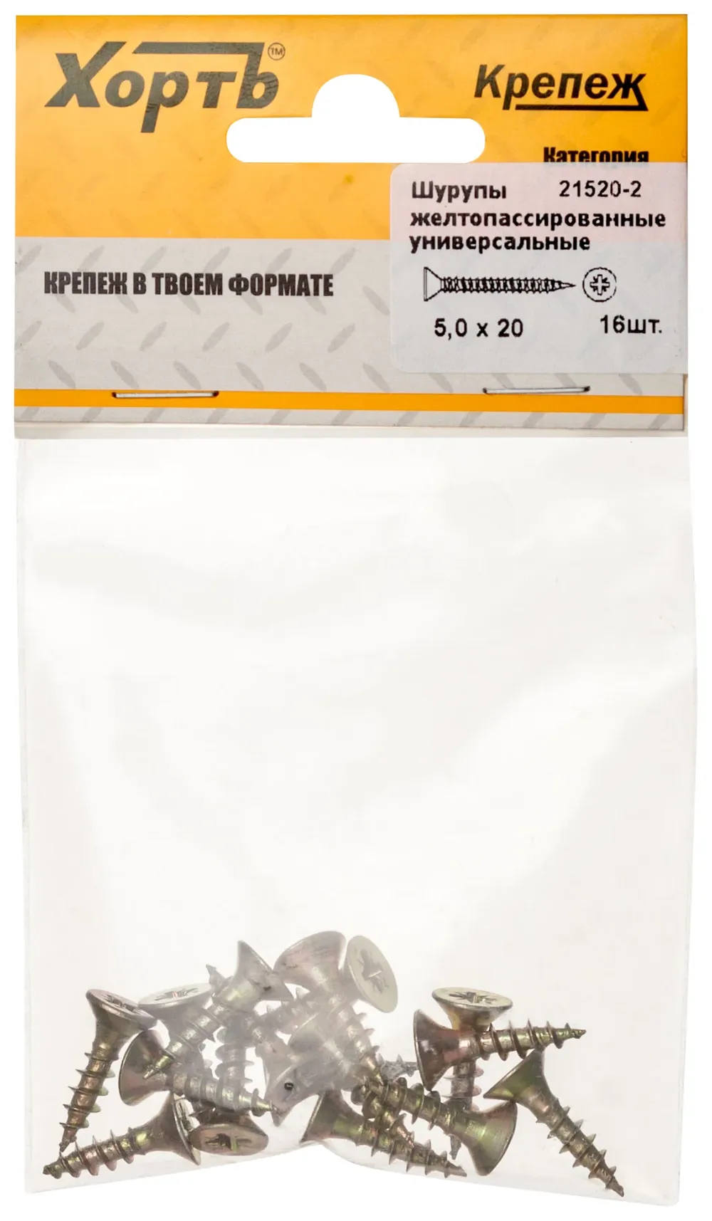 Шурупы желтопассированные, универсальные 5 х 20 ( фасовка 16 шт.) — крепёжный элемент для монтажа, фиксации и сборки конструкций.