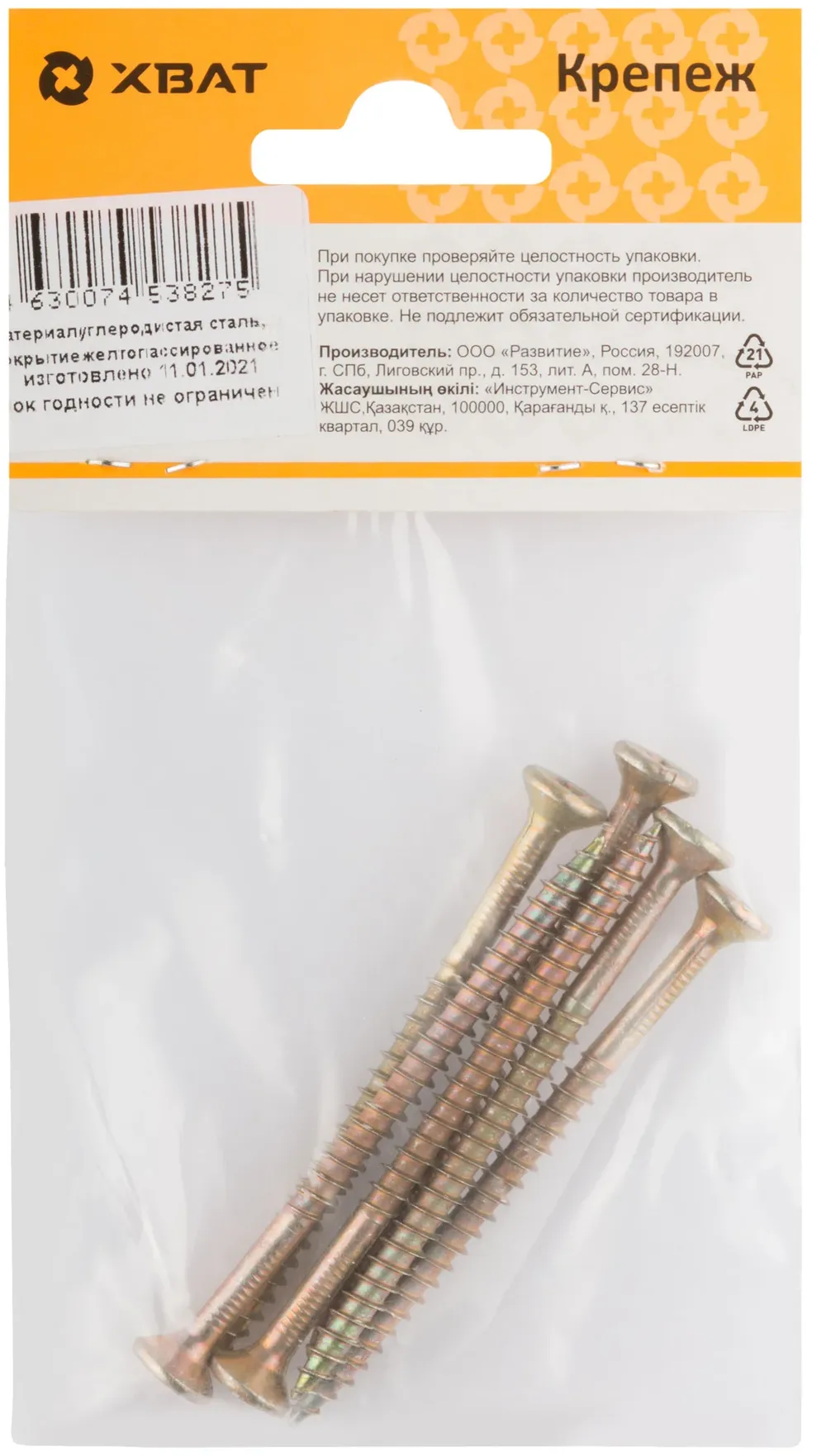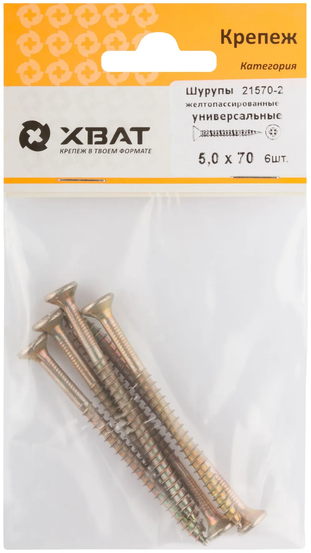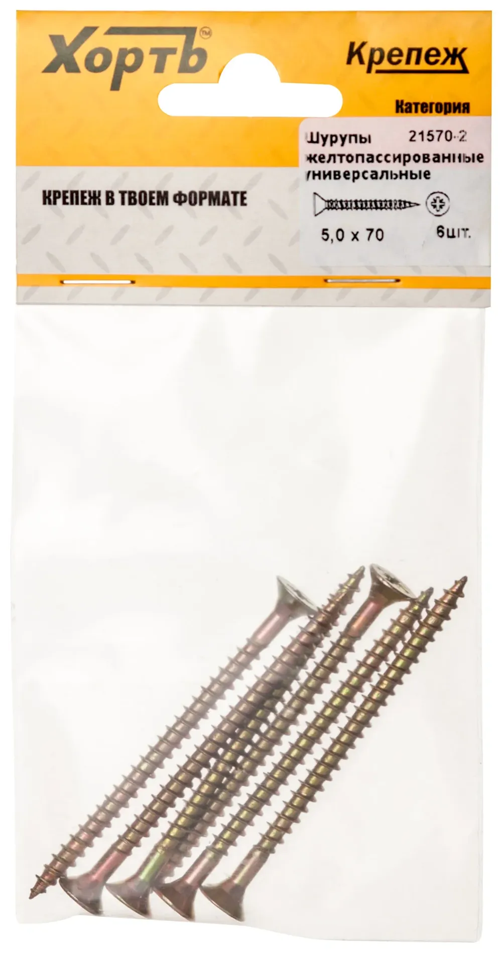 Шурупы желтопассированные, универсальные 5 х 70 ( фасовка 6 10.) — крепёжный элемент для монтажа, фиксации и сборки конструкций.