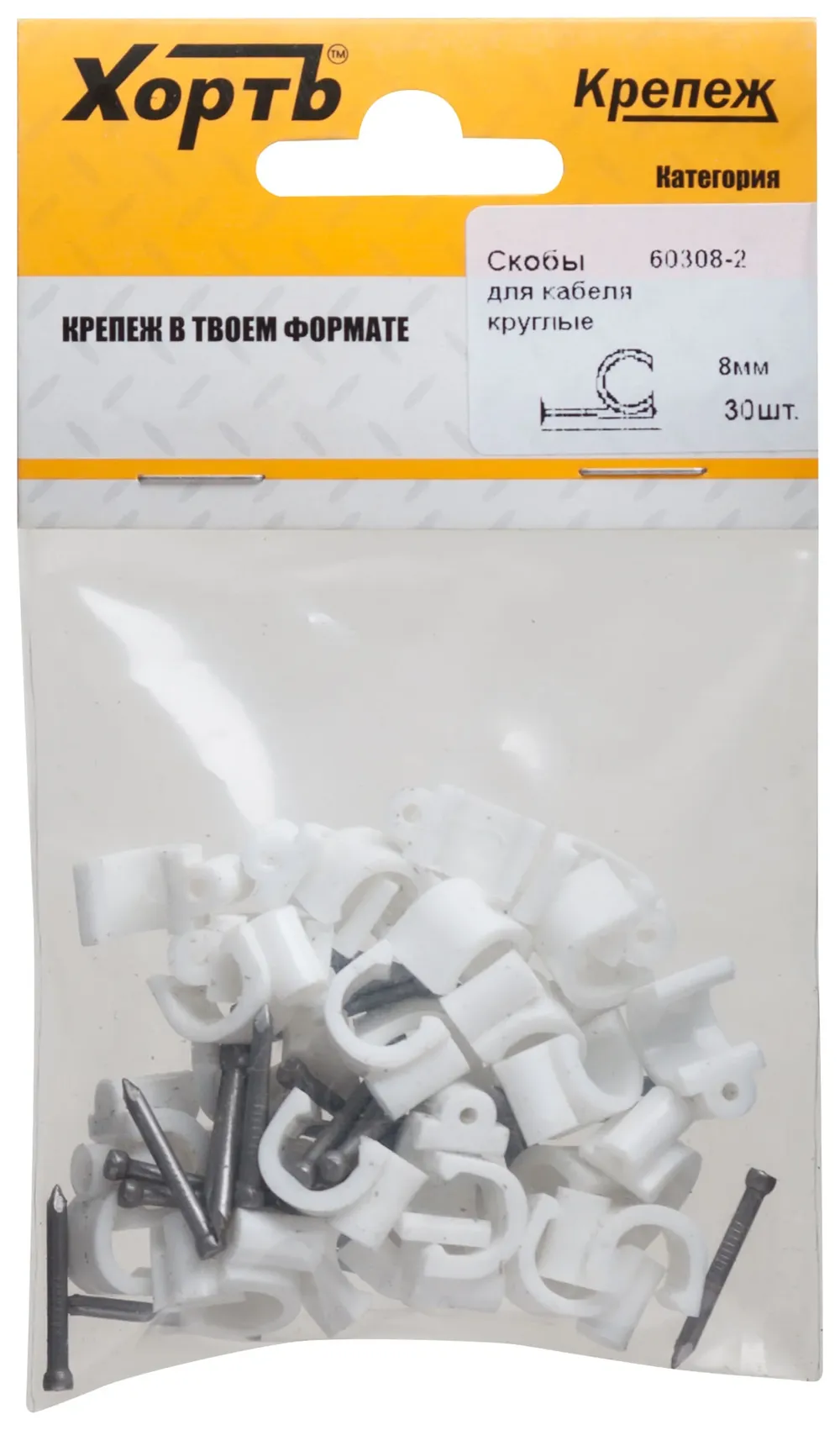 Купить недорого Скобы для кабеля круглые 8 мм (фасовка 30 10.) в Москве