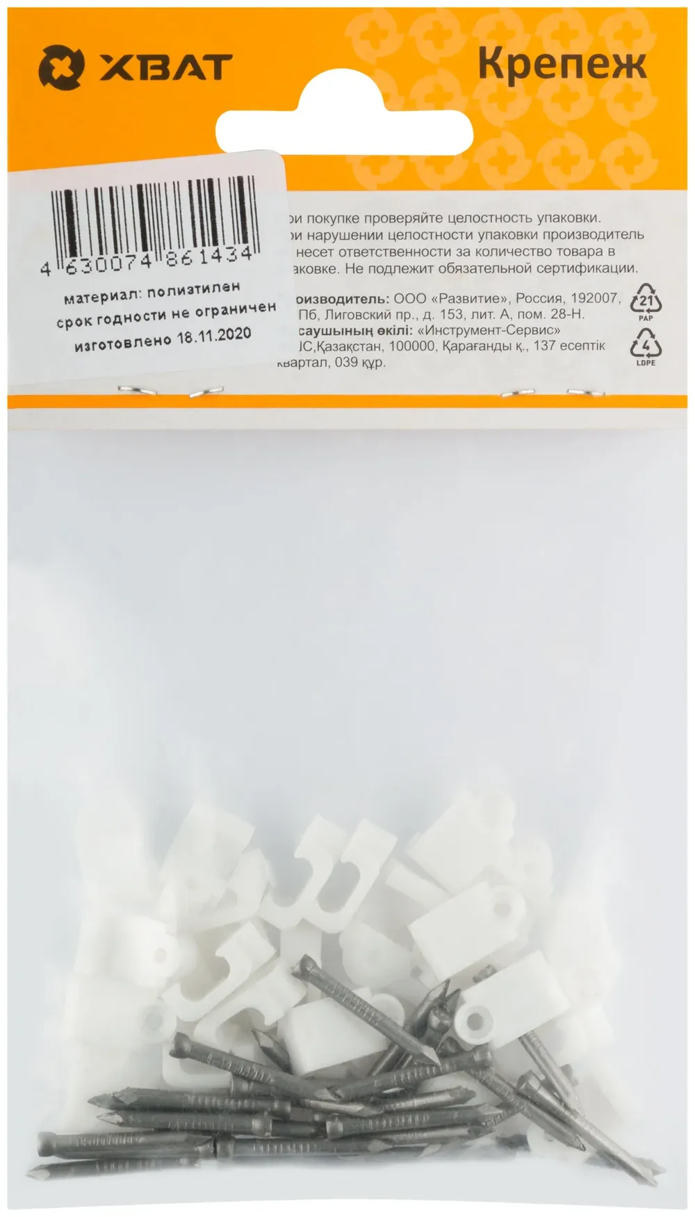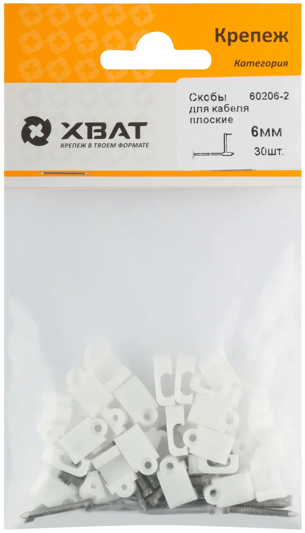 Скобы для кабеля плоские 6 мм (фасовка 30 10.) — товар для строительных и ремонтных работ для строительных, монтажных и хозяйственных задач.