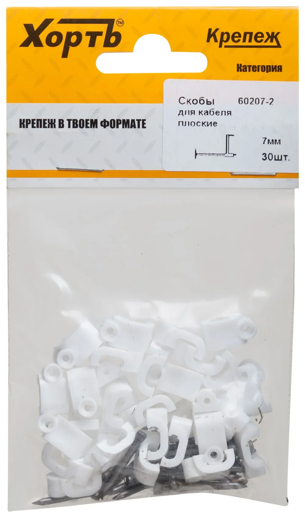 Скобы для кабеля плоские 7 мм (фасовка 30 10.) — товар для строительных и ремонтных работ для строительных, монтажных и хозяйственных задач.