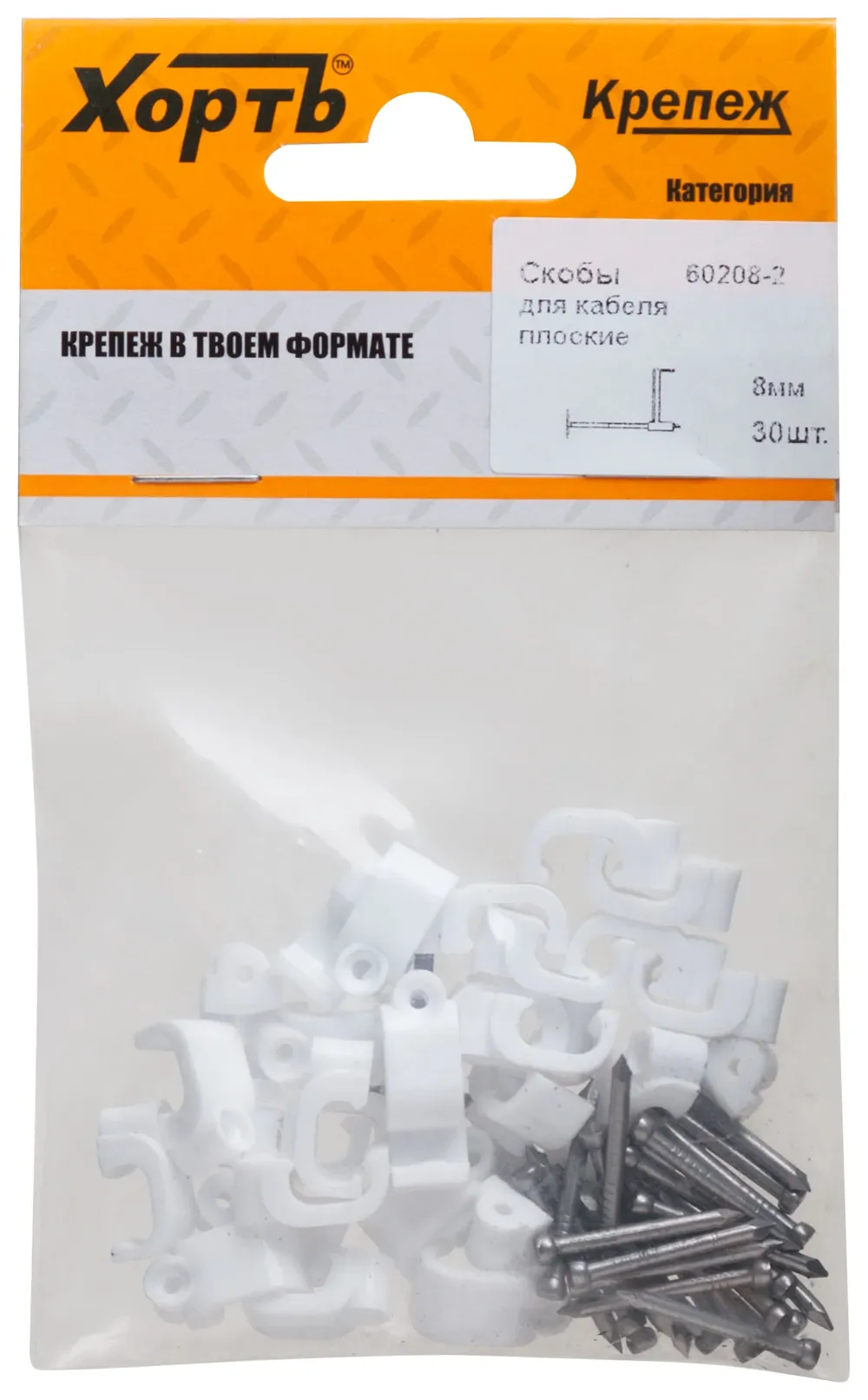 Скобы для кабеля плоские 8 мм (фасовка 30 10.) — товар для строительных и ремонтных работ для строительных, монтажных и хозяйственных задач.