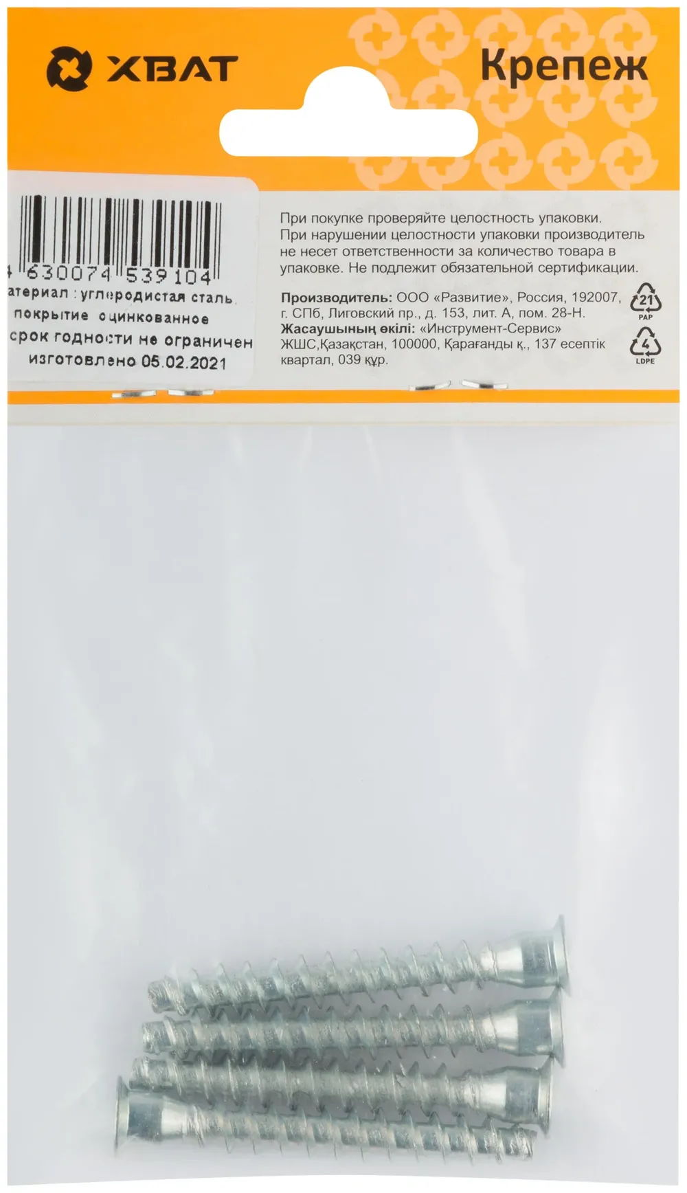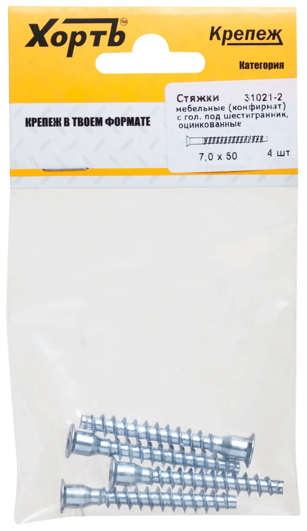Стяжки мебельные (конфирмат) с головкой под шестигранник, оцинкованные 7 х 50 (фасовка 4 10.) — товар для строительных и ремонтных работ для строительных, монтажных и хозяйственных задач.
