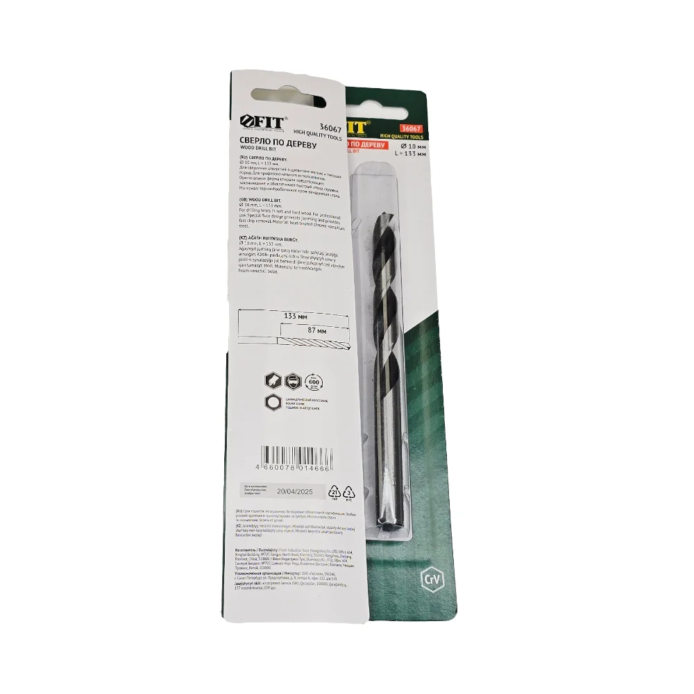 Сверло по дереву, CrV Профи 10 мм FIT — оснастка для инструмента для сверления, резки, шлифования, зачистки и демонтажа.