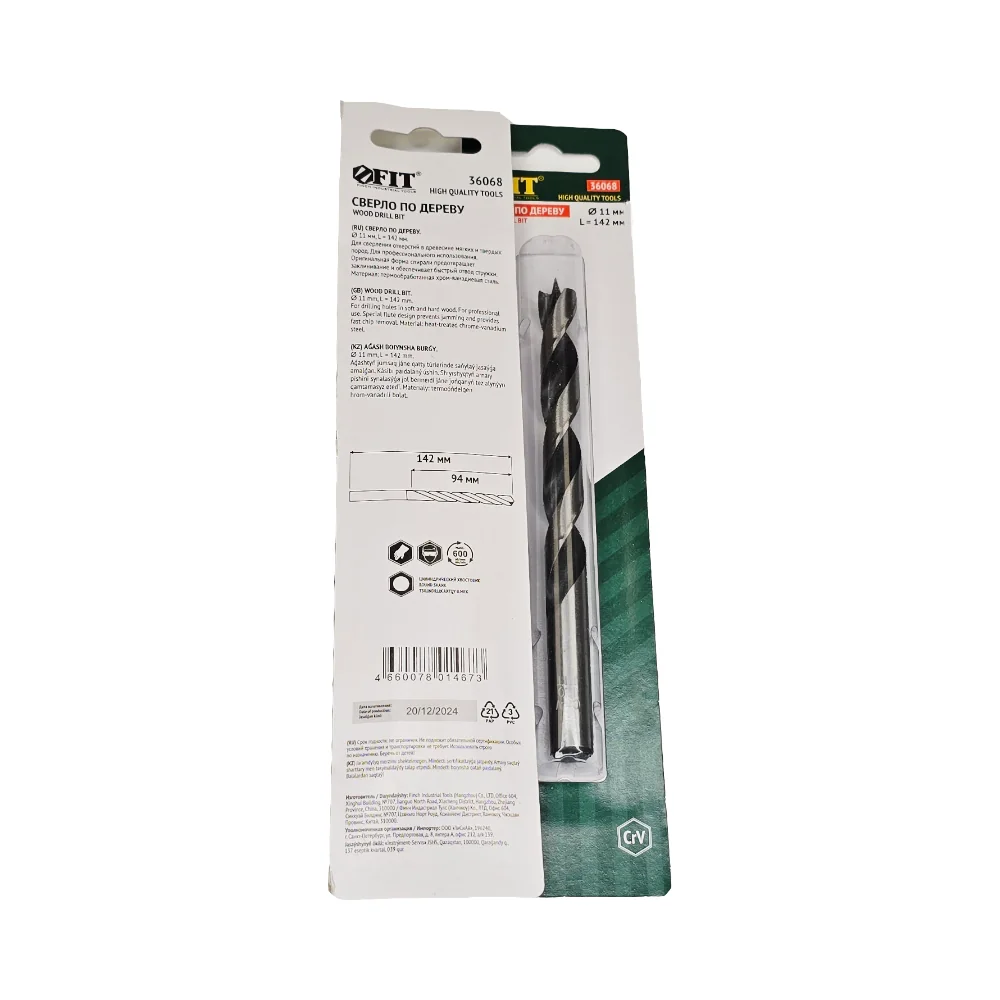 Сверло по дереву, CrV Профи 11 мм FIT — оснастка для инструмента для сверления, резки, шлифования, зачистки и демонтажа.