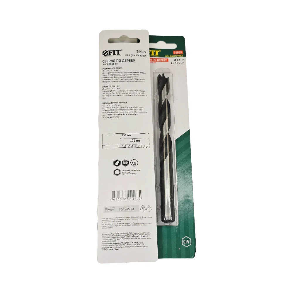 Сверло по дереву, CrV Профи 12 мм FIT — оснастка для инструмента для сверления, резки, шлифования, зачистки и демонтажа.