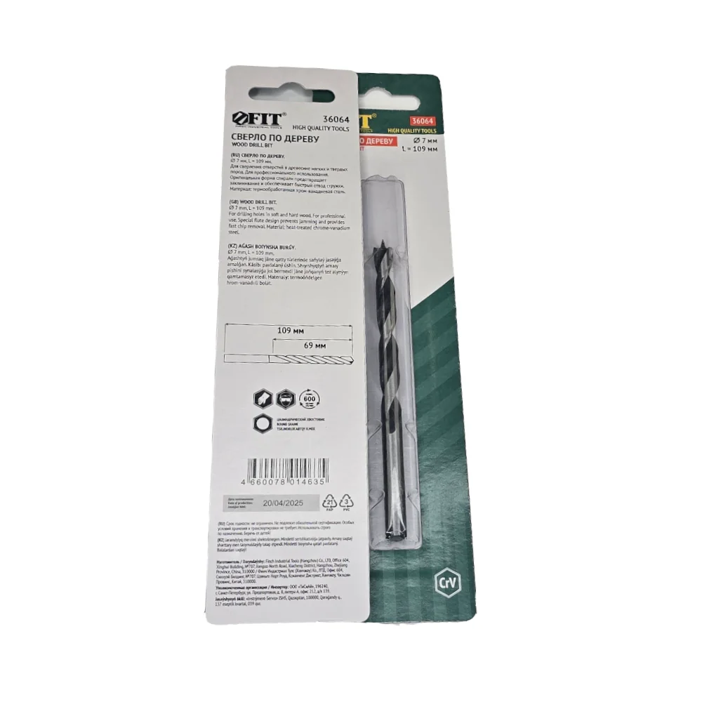 Сверло по дереву, CrV Профи 7 мм FIT — оснастка для инструмента для сверления, резки, шлифования, зачистки и демонтажа.