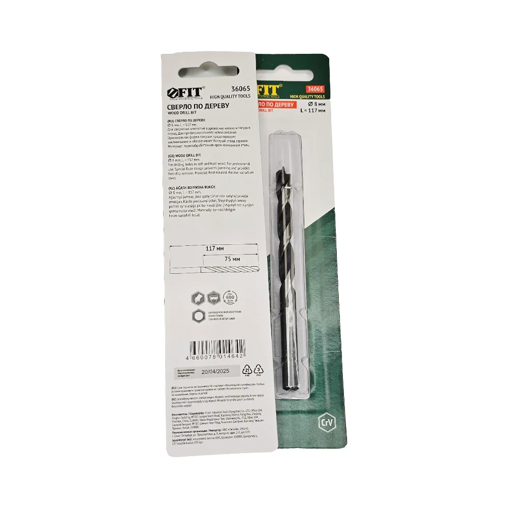 Сверло по дереву, CrV Профи 8 мм FIT — оснастка для инструмента для сверления, резки, шлифования, зачистки и демонтажа.