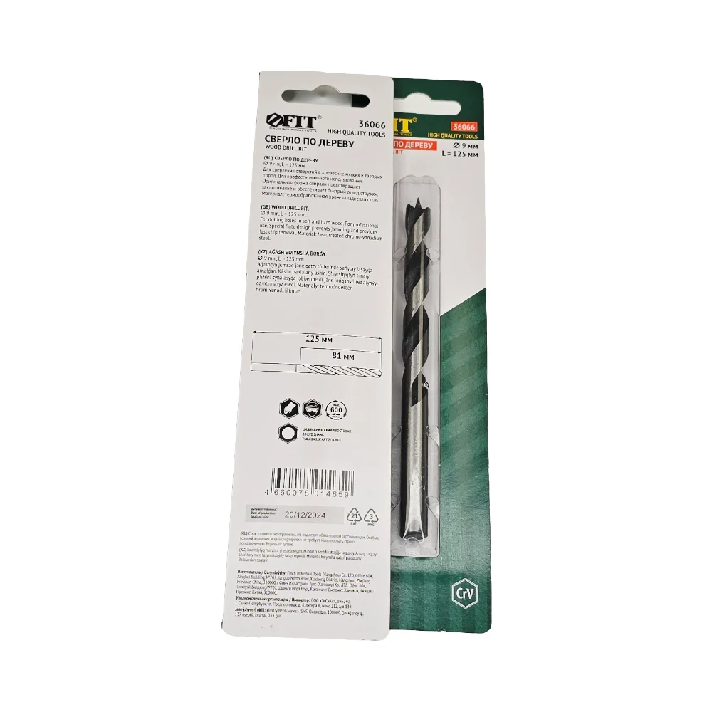 Сверло по дереву, CrV Профи 9 мм FIT — оснастка для инструмента для сверления, резки, шлифования, зачистки и демонтажа.