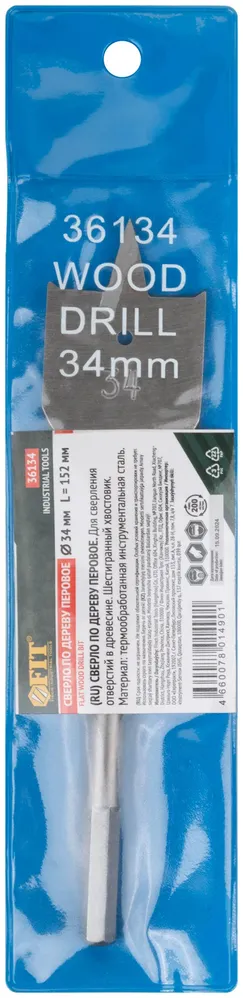 Сверло по дереву перовое 34x152 мм — оснастка для инструмента для сверления, резки, шлифования, зачистки и демонтажа.