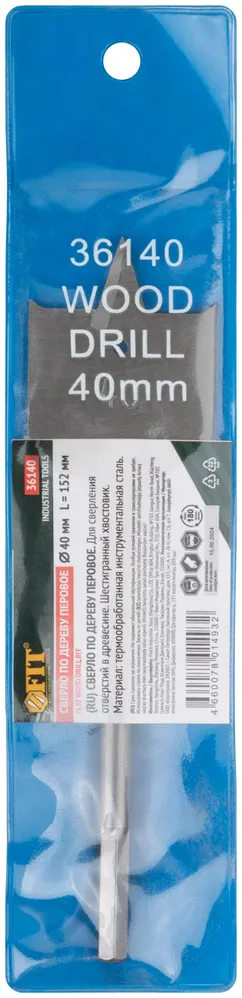 Сверло по дереву перовое 40x152 мм — оснастка для инструмента для сверления, резки, шлифования, зачистки и демонтажа.