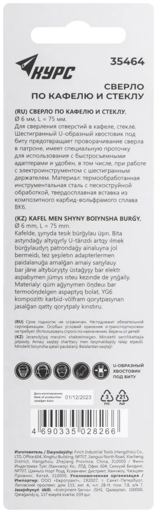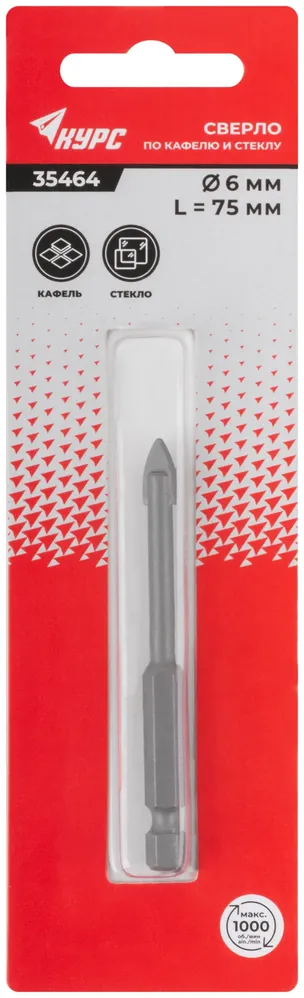 Сверло по кафелю и стеклу, шестигранный U-хвостовик под биту 6х75 мм — оснастка для инструмента для сверления, резки, шлифования, зачистки и демонтажа.